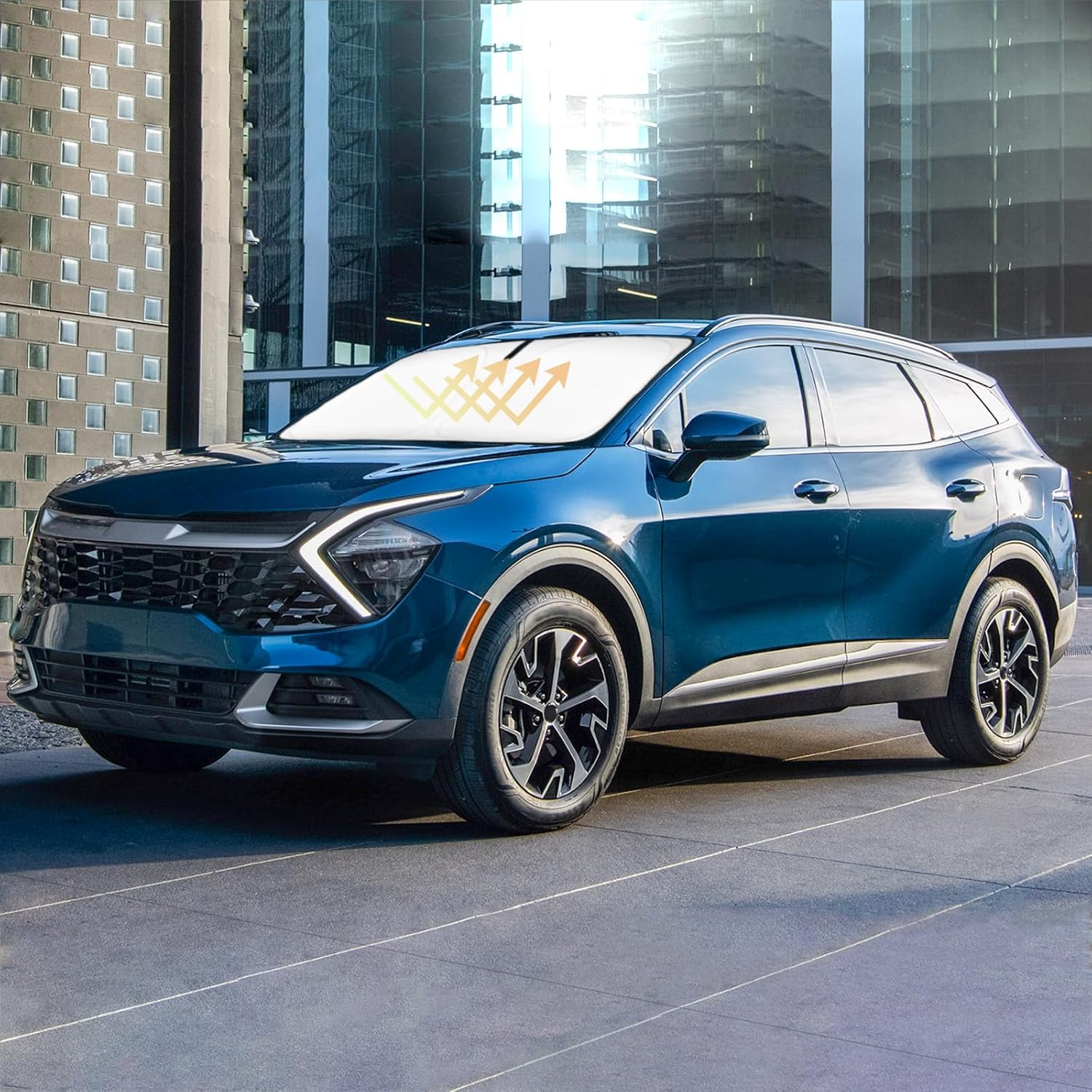 - ăVehicle SpecificăOur Windshield Shade Cover custom fit for 2022 2023 2024 2025 Kia Sportage SUV , Base, Sport, Hybrid, A-Spec SUV Accessories,Full covered your windshield,No Gap,100% Perfect fit. The precise fit design and reinforced steel ring are sufficient to allow the sun shade to precisely fit the front window without the need for suction cups to hold it in place, effectively protecting your car from the sun's rays.
