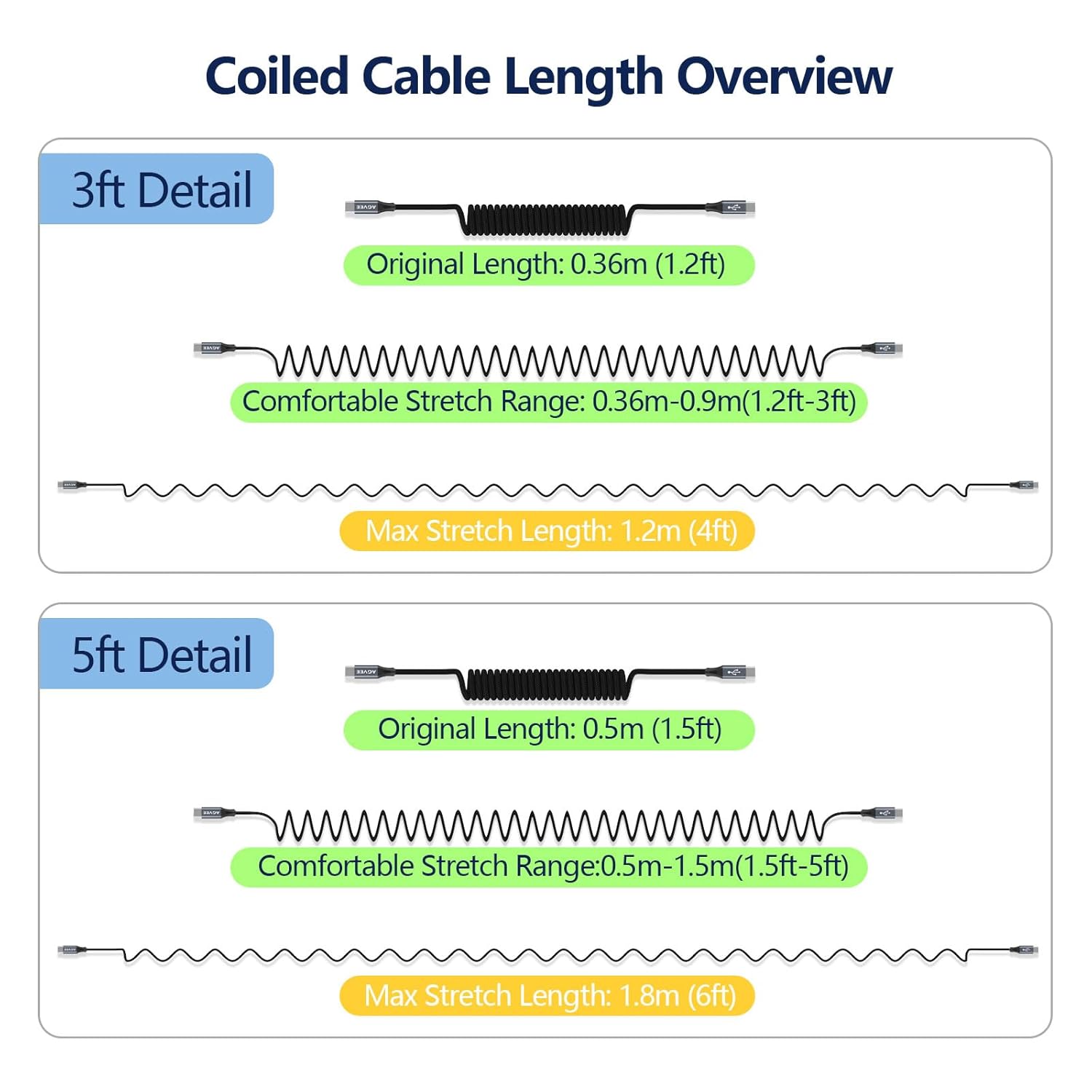 - ๐[Tame Your Car's Cable Jungle] No more wrestling with spaghetti cords! Our coiled design stretches from short to long, perfect for tight car spaces, then snaps back neatly like a slinky. Keep your cup holders free for coffee, not tangled chaos! Soft and elastic: No more wrestling with stiff, frozen-spaghetti-like cables in winter; Squishy as a pacifier, coils like a zen master.