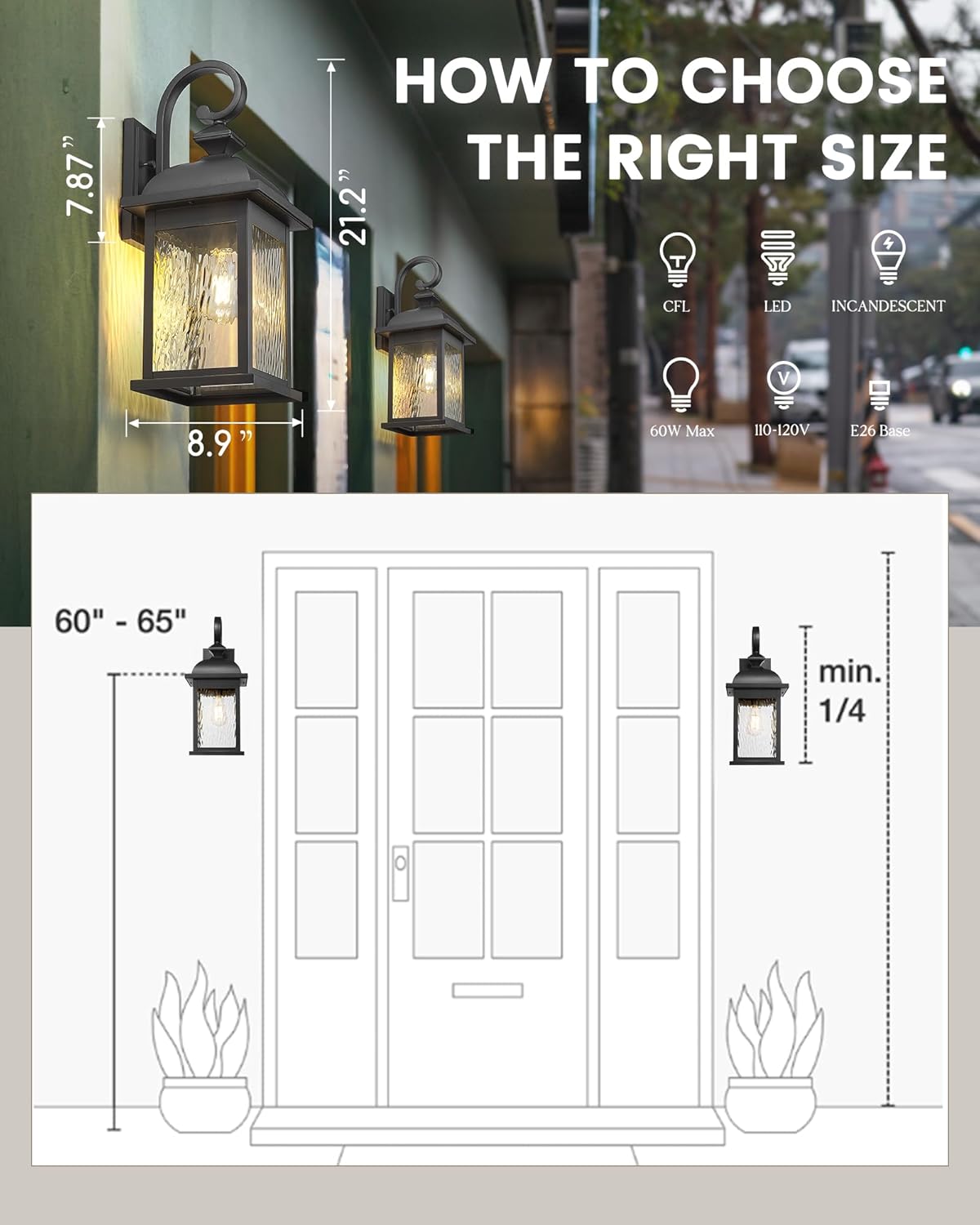- Elegant & Modern Design: Blending classic lantern style with modern touches, this 2 set of outdoor wall sconce adds sophistication to your space. Ideal as a porch light or front door light, it creates a warm and inviting ambiance.