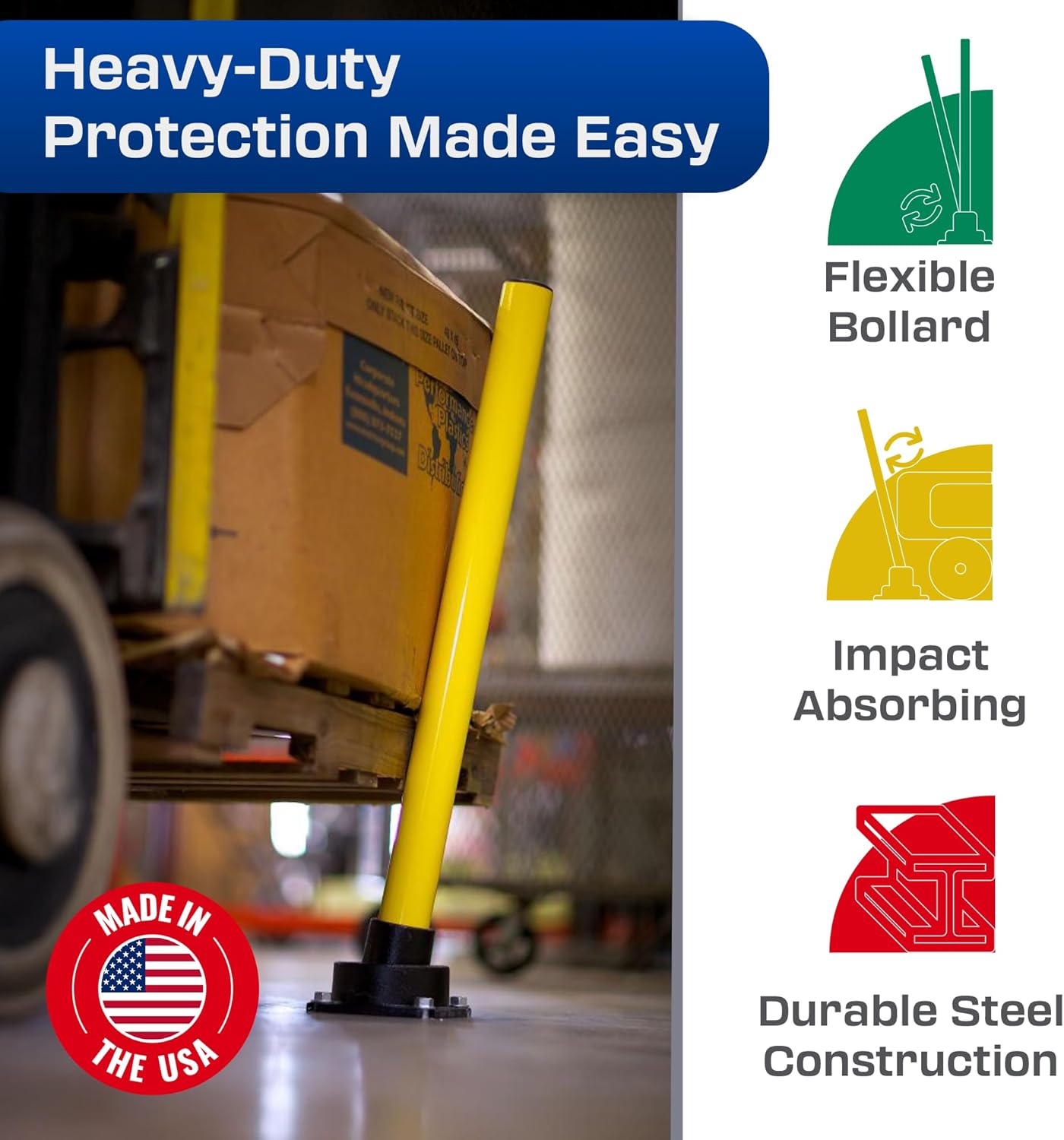 - Handles Heavy Hits: This durable removable bollard withstands impacts from low-speed cars, light trucks, and forklifts up to 5,000 lb., offering reliable, long-term protection without permanent damage