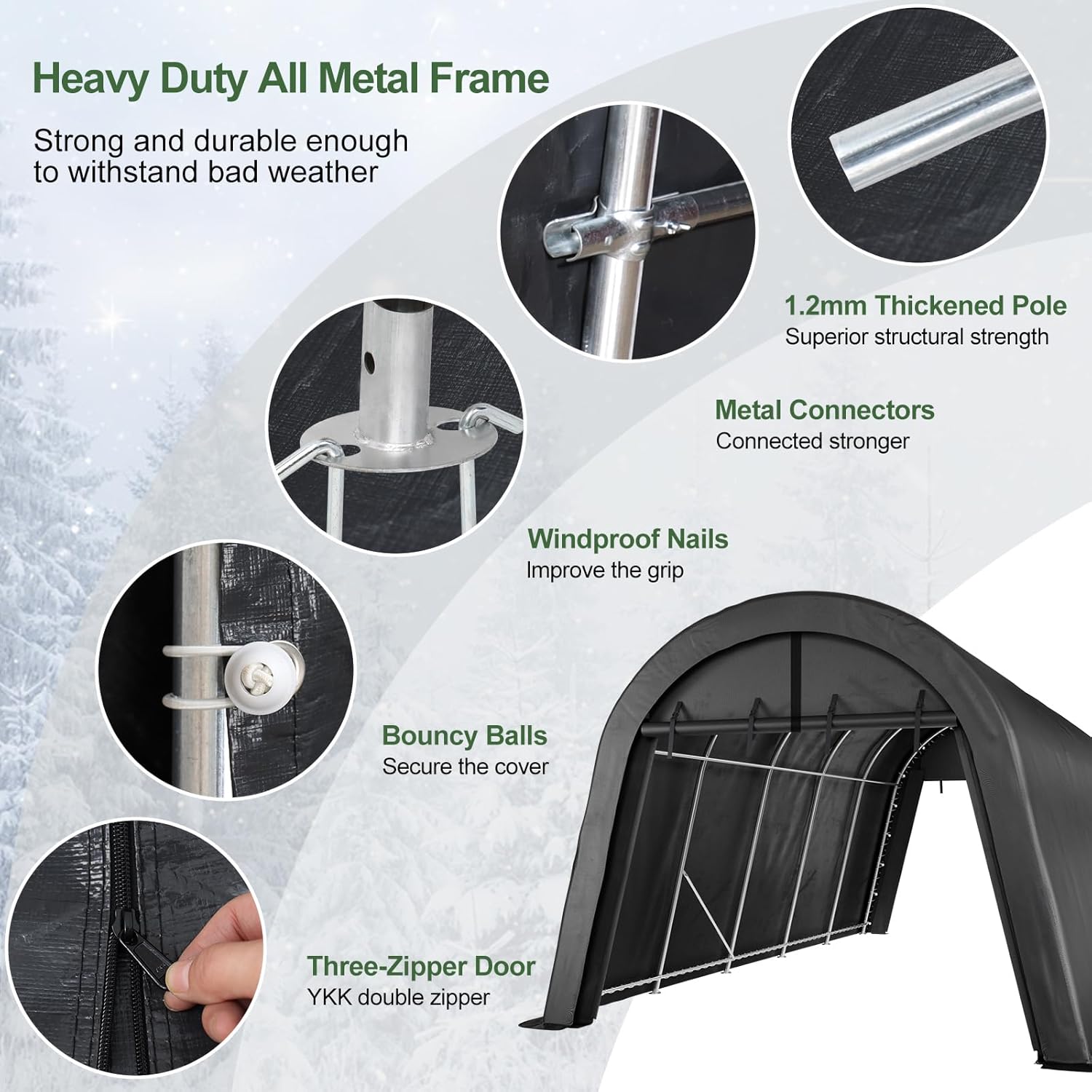 - Recommended Uses For Product : Anti-Snow Car Canopy, Temporary Shelter, Outdoor Storage, All-Steel Metal Frame, Vehicle Storage