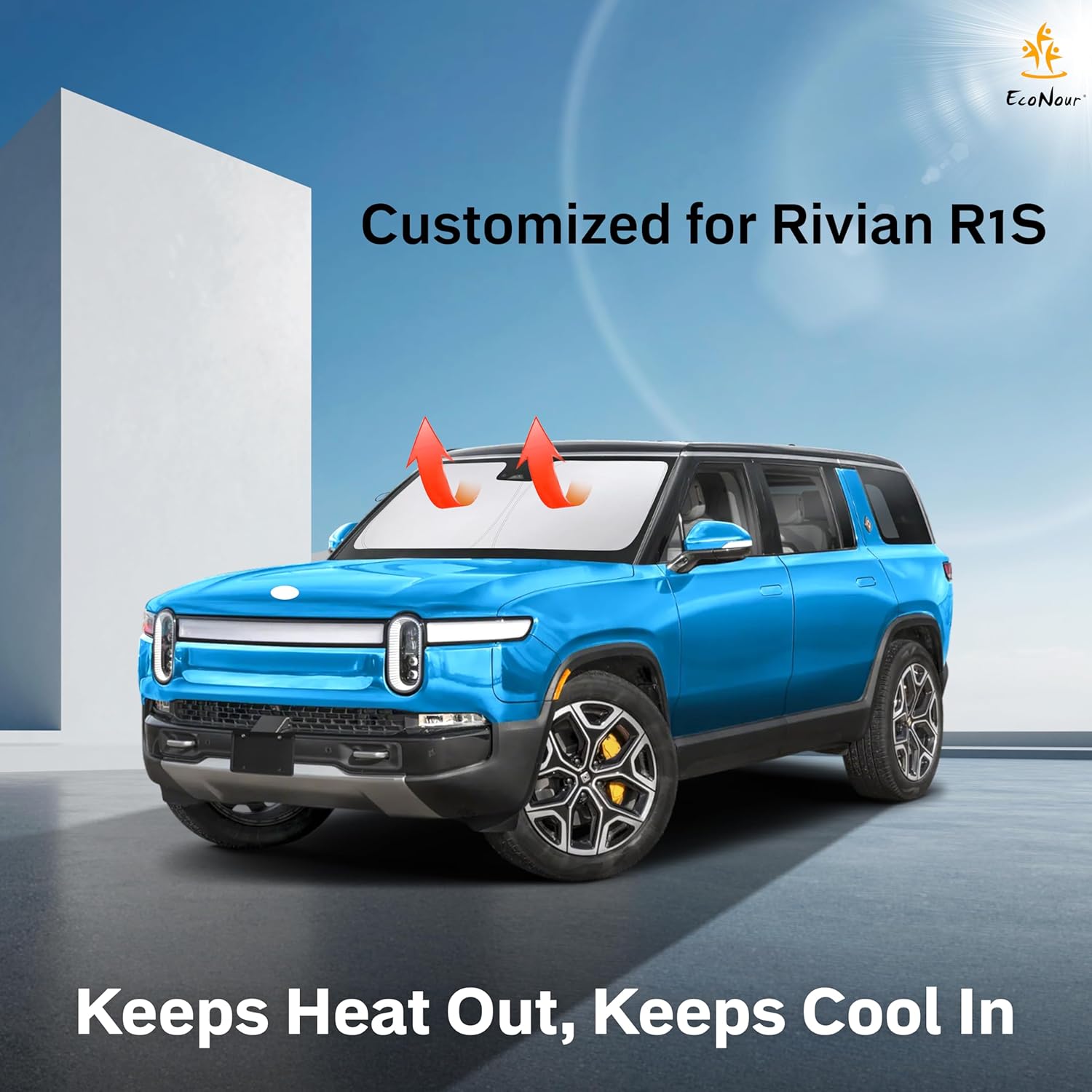 for Rivian R1S 2022-2024 2025 Windshield Sunshade Compatible for -EcoNour 240T Polyester Material Cars Sun Visor Reflector Blocks UV Rays - Foldable Sunshade Interior Protection Rivian Accessories