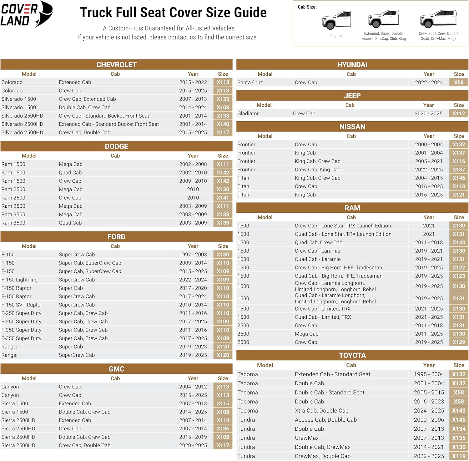 Coverland Custom Car Seat Covers Compatible with 2020-2025 Gladiator Crew Cab - Premium Leather Non-Slip Memory Foam Waterproof Custom Interior Protector Full Set-Black [See Size Chart-Size X112]