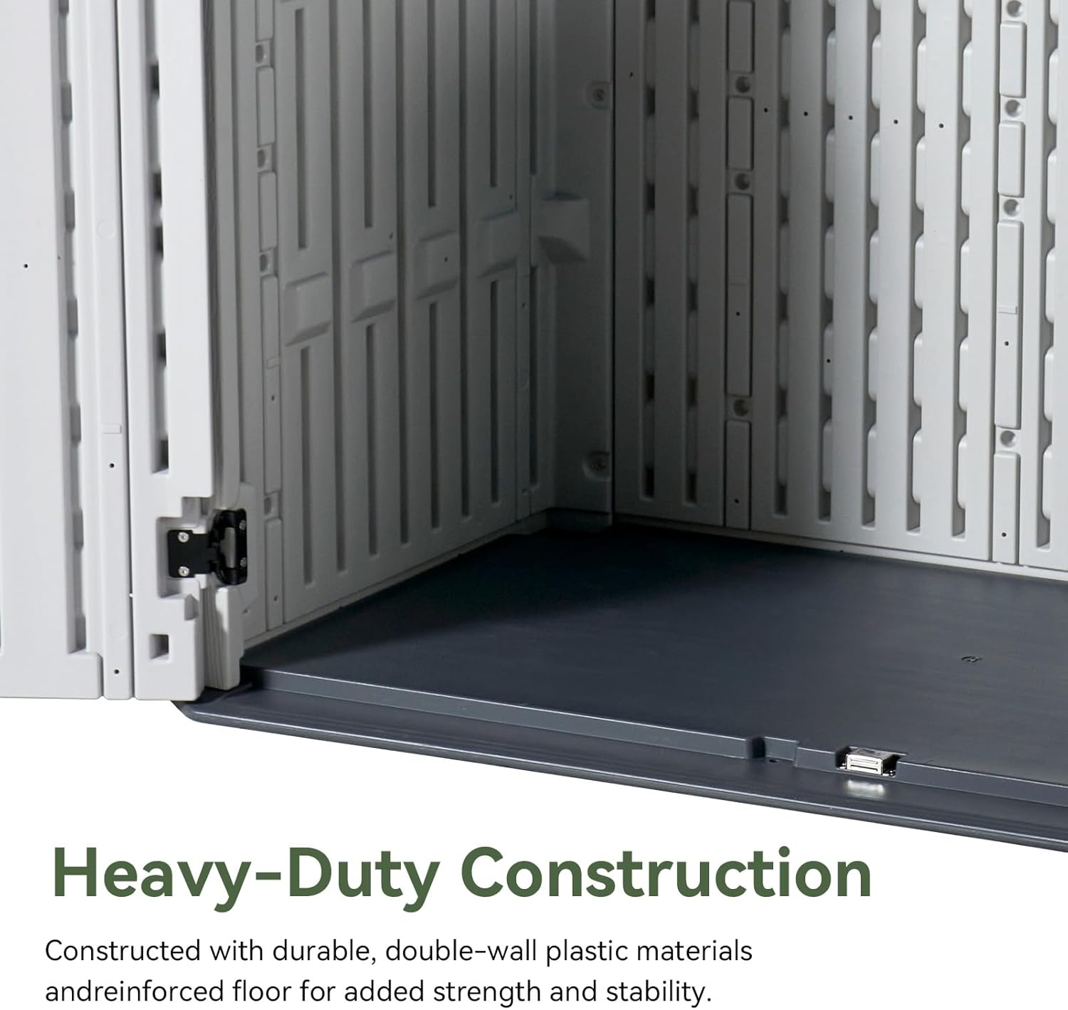 Aoxun 64 Cu.Ft Outdoor Storage Shed with Floor, Waterproof Horizontal Resin Cabinet for Garage Storage, Pool Storage, Bike Shed, Garden Shed
