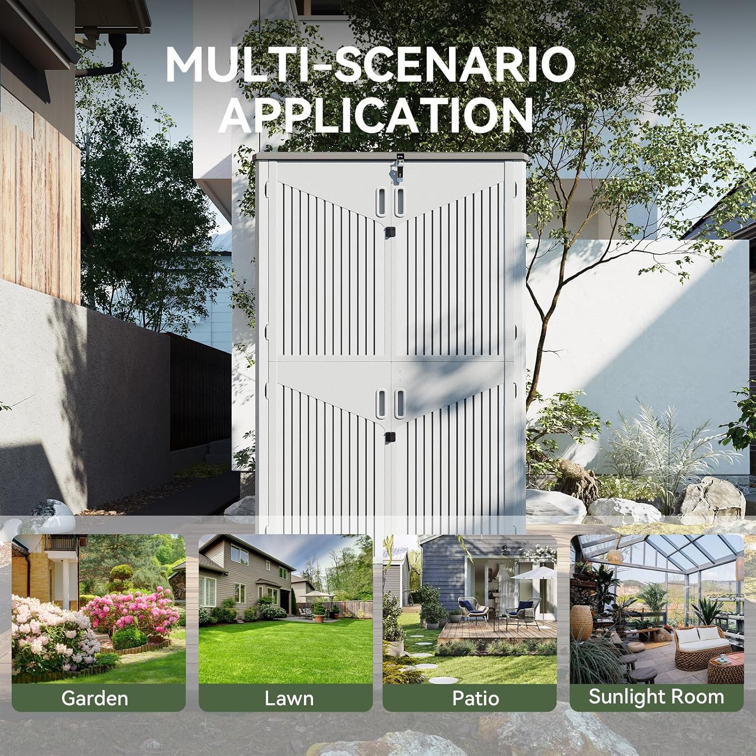 • 【Widened Anti-Toppling Base for Enhanced Stability】Designed with a widened bottom, this storage shed ensures superior stability, even on uneven ground. The top and bottom door suction system prevents accidental opening or closing, guaranteeing safety and durability during frequent use.