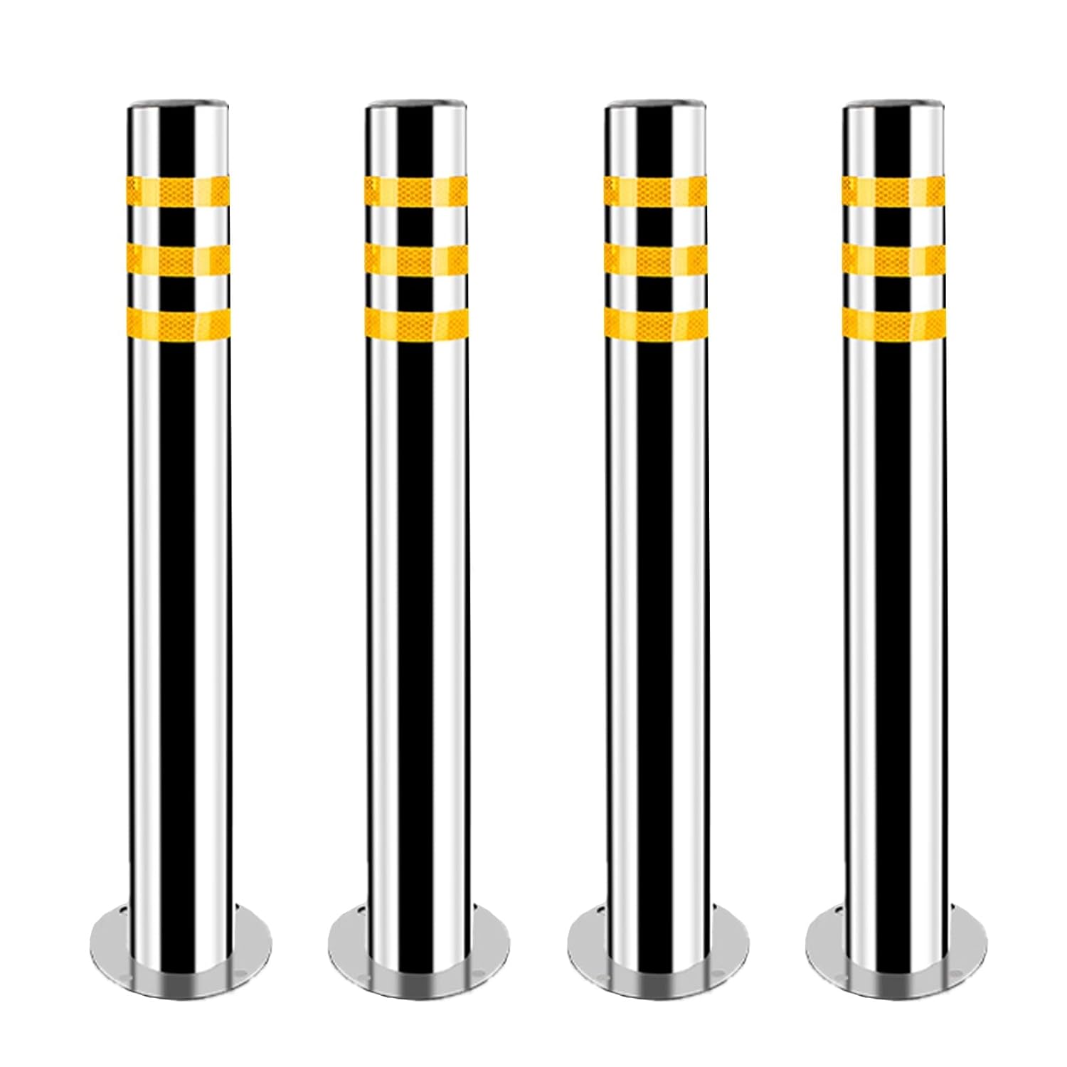 Stainless Steel Parking Bollards for Driveway, Industrial Safety Bollards Reflective Channelizer Post, Parking Barrier, Sturdy and Durable, Easy to Install, for Crowd Control(Silver (4pcs),7.6*60cm/3*
