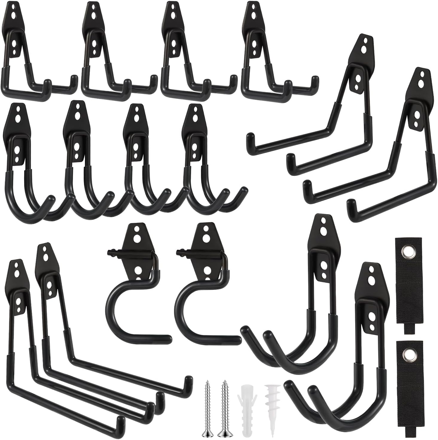 Garage Hook Heavy Duty Wall Storage Hangers, 18 Pack Garage Storage Hooks Steel Tool Black for Ladders, Ropes, Garden Tools