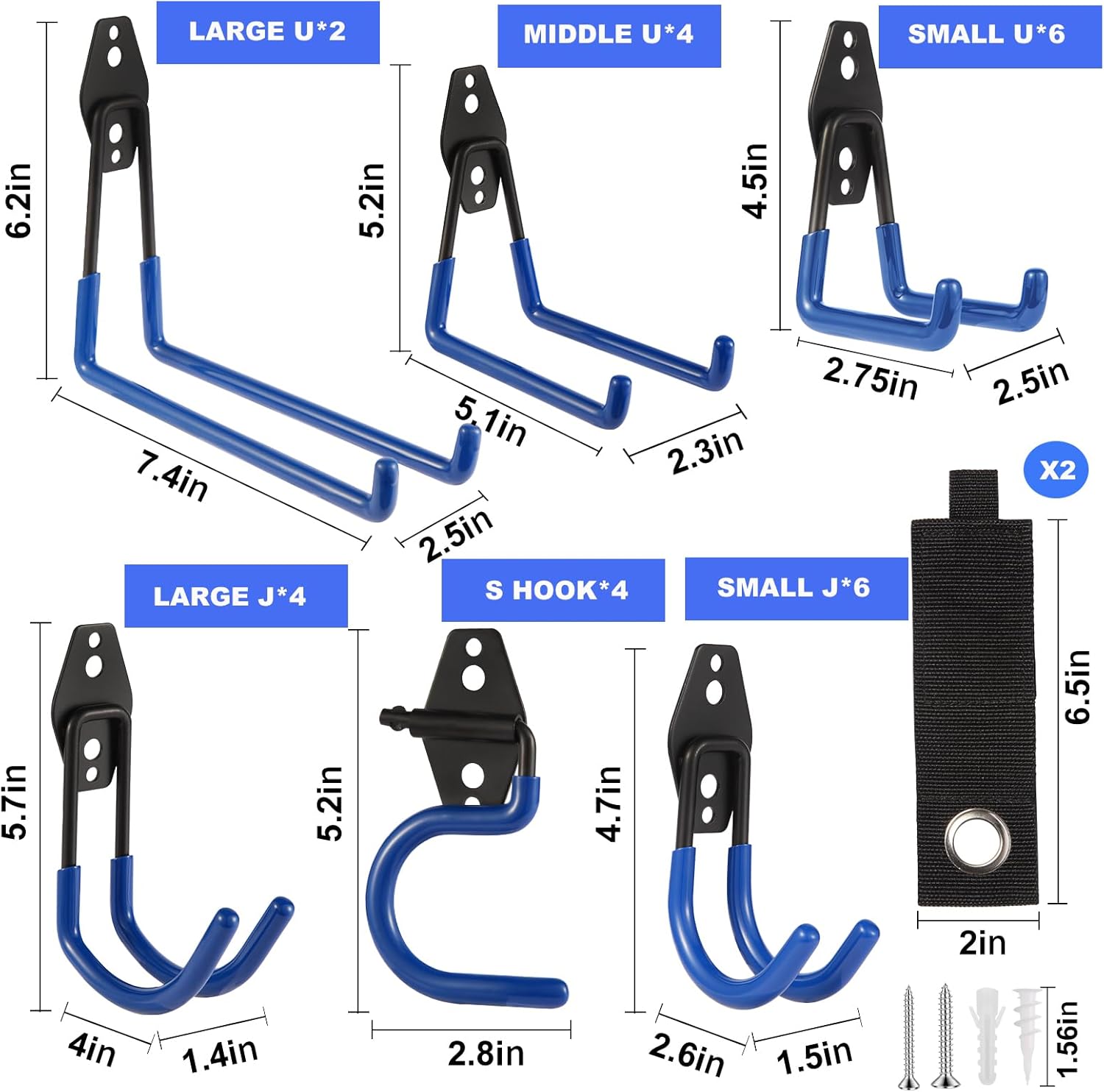 Garage Hook Heavy Duty Wall Storage Hangers, 28 Pack Garage Storage Hooks Steel Tool Blue for Ladders, Ropes, Garden Tools