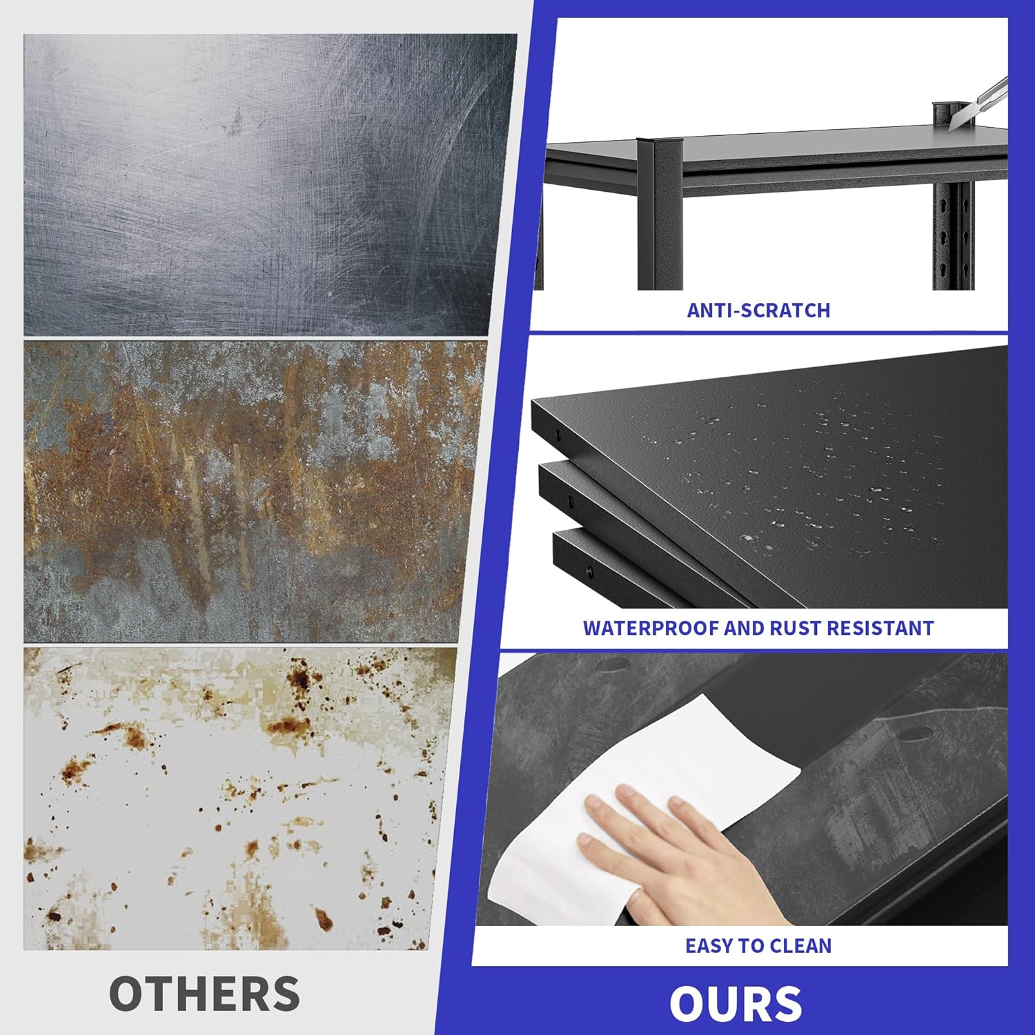 - 👉 HEAVY-DUTY LOAD-BEARING DESIGN: This metal shelves are made of high-strength steel to create a strong load-bearing capacity, easily carrying tools, equipment, storage boxes and other heavy objects, stable and durable, safe and worry-free!