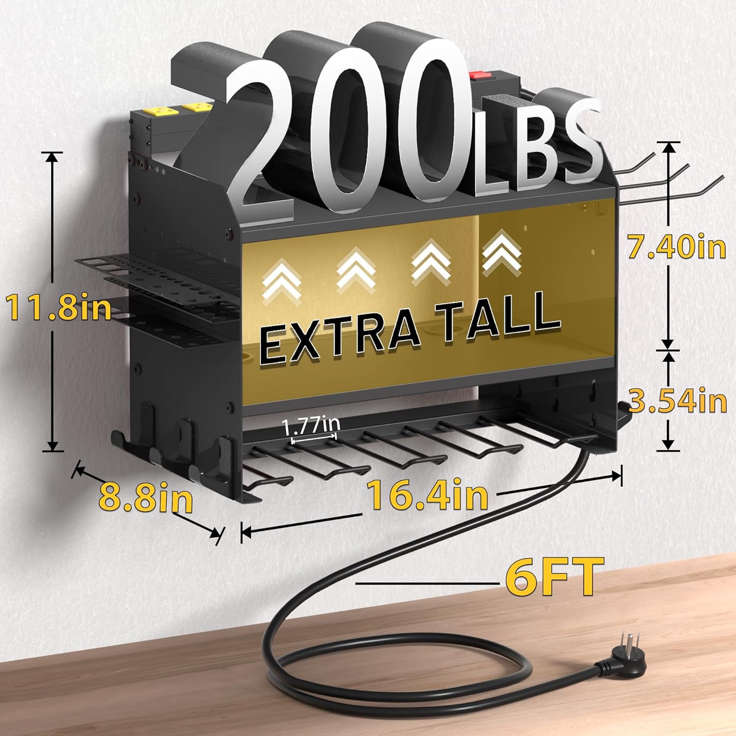 - TOOL CHARGING STATION:8 outlets power strip for power tool organizer solves the power needs,with 125V/15A/1875W,6ft power cord and 2100J surge protection to protect power equipment;Drill holes in single-layer boards to solve power cord clutter problems