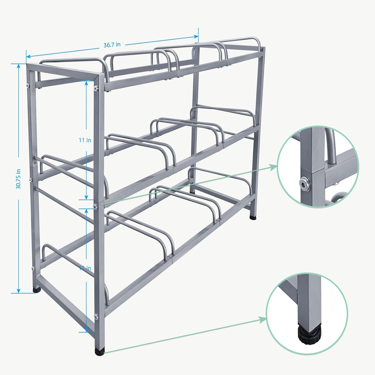 - Space-Saving & Versatile Design: Perfect for small spaces, this 3-tier water jug storage rack fits seamlessly in homes, offices, garages, and more. It can store a weekโs supply of water for 10-12 people and accommodates both 3-gallon and 5-gallon jugs without wobbling, maximizing space efficiency.