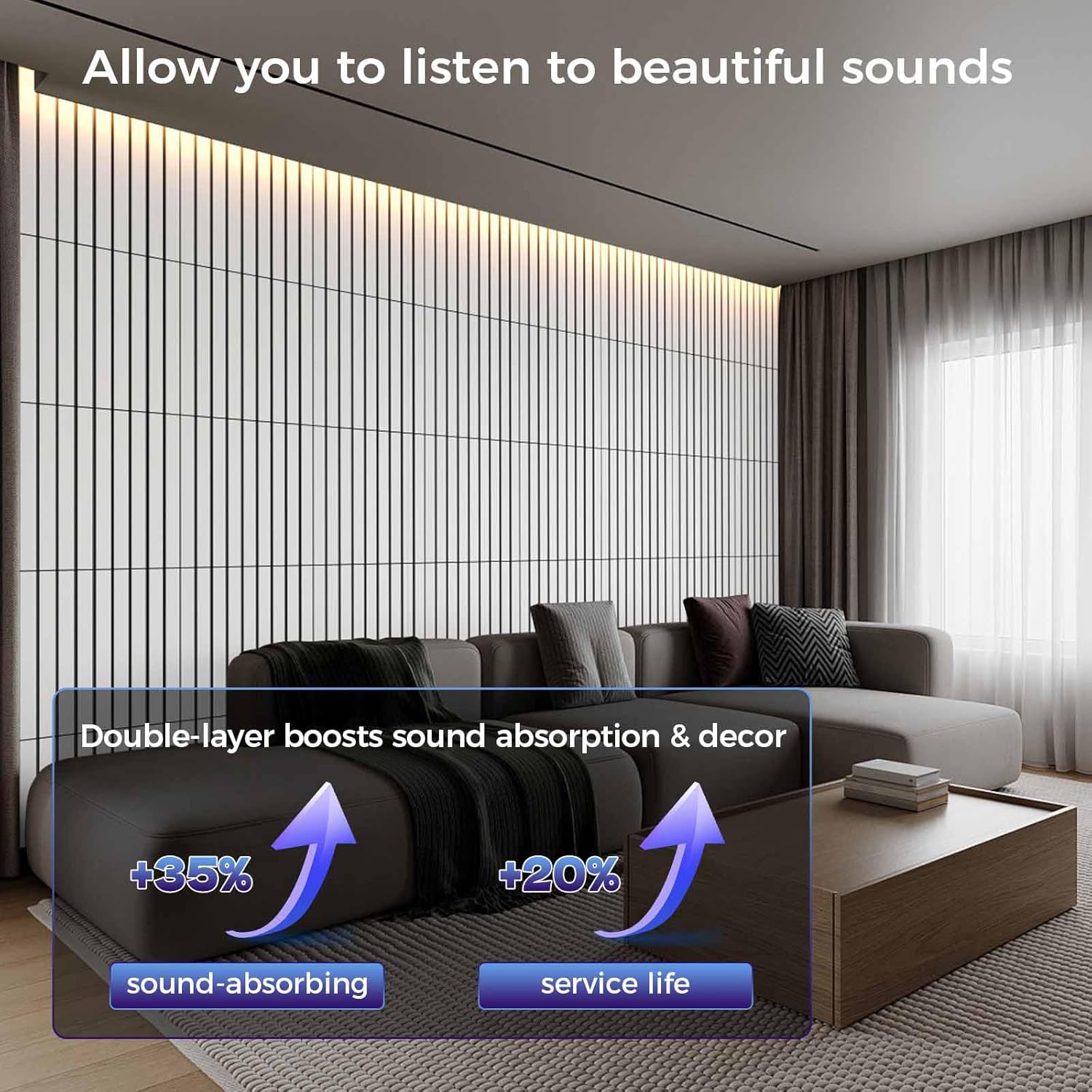 - Excellent Sound Insulation Effect: Our soundproof wall panels has an innovative double-layer structure, providing better sound absorption capacity and decorative effect, especially greatly enhancing the isolation ability of low-frequency noise, which can effectively reduce noise propagation and echo, and provide a quieter environment. Effectively reduces sound reflected from wall, ceiling and floor surfaces, meeting most acoustic treatment needs.