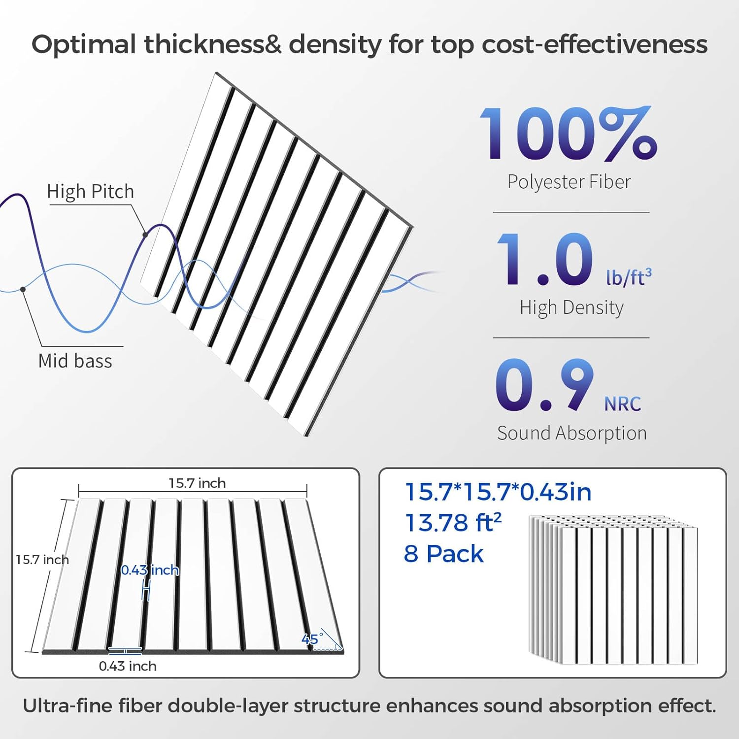 8 Pack 2-Layer Large Soundproof Wall Panels, 15.7 x 15.7 x 0.43 in Sound Proof Foam Panels for Walls, 0.9lb/ft³ High Density, 3D Acoustic Panels,Artistic Noise Dampening Panels White&Black