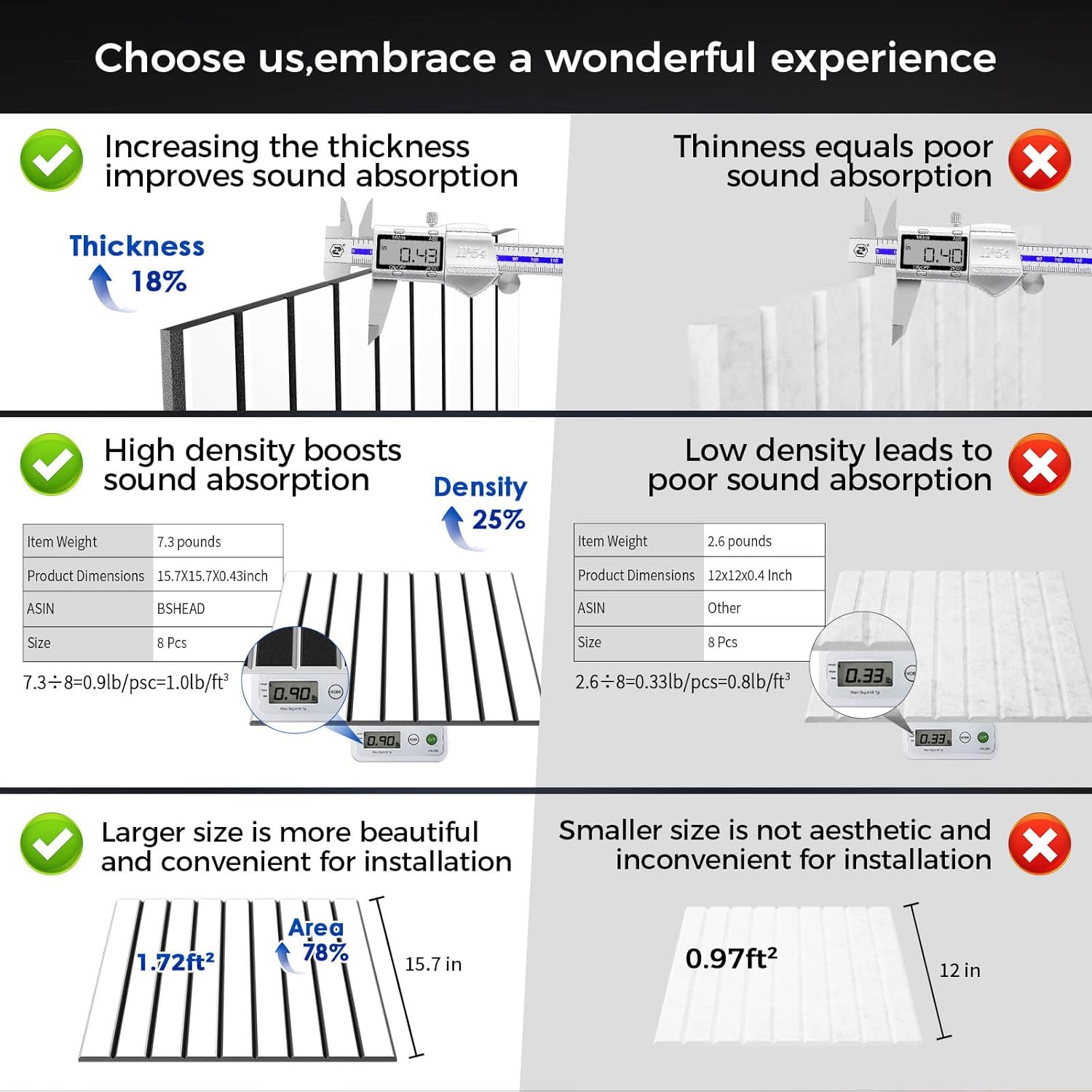 - Widely Applicable: Acoustic panels self adhesive size: 15.7" x 15.7" x 0.43", and the thickness is 8% thicker than the traditional thickness, it can provide more effective noise blocking and is suitable for a variety of high-demand environments. Suitable for home theaters, professional studios, music rooms, It can effectively improve the audio effect and enhance the work and entertainment experience in various places such as game rooms, bedrooms, offices, etc.