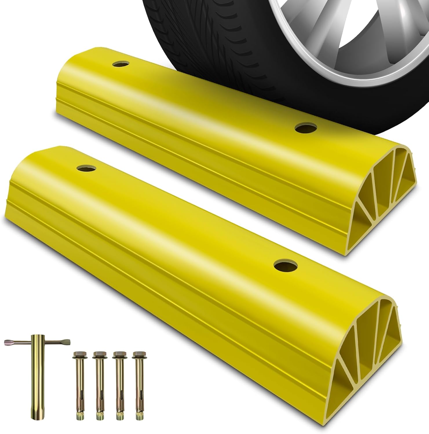 ROBLOCK Parking Stopper for Home Garage & Outside, Heavy Duty Garage Stoppers for Protecting Your Vehicle, Parking Aids for New Drivers, Wheel Stops for Cars, Vans, Trailer, 2 Packs, Yellow