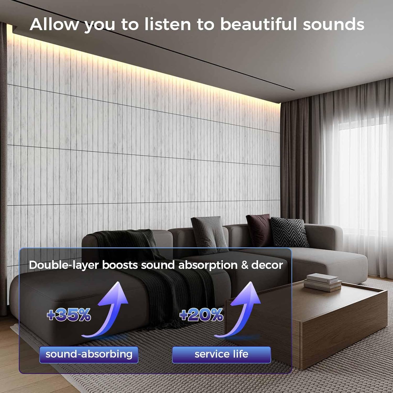 - 【Wide Range of Uses】: The elegant and generous lines of the decorative wall panels not only enhance the visual effect of the space, but we also provide a variety of color options, allowing you to create a unique space atmosphere through clever combinations, perfectly matching your various decoration styles. Noise cancelling wall panels is widely used in various scenarios such as musical instrument rooms, podcasts, recording studios, piano rooms, cinemas, living rooms, bedrooms, offices, etc