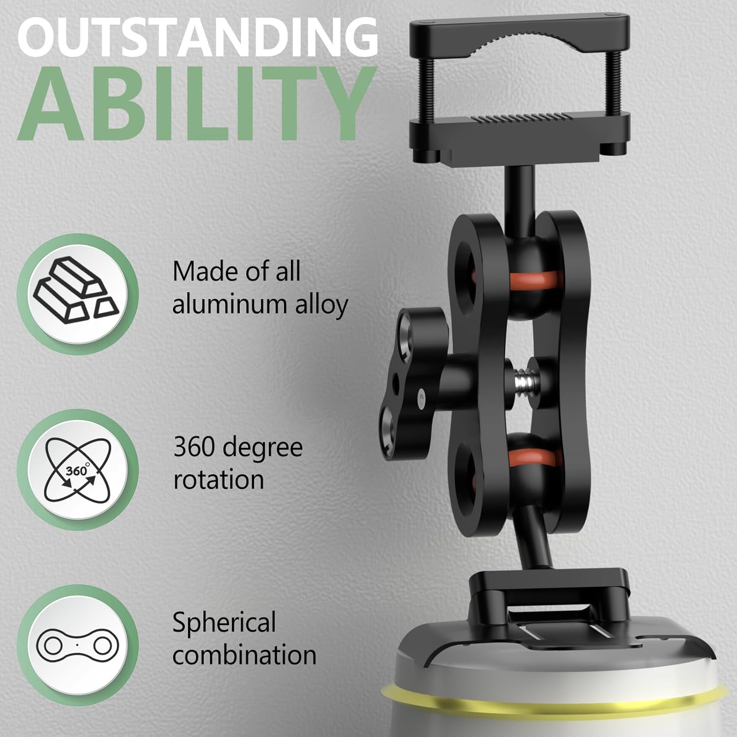 - Aluminum rearview mirror bracket has strong expandability, with two 1/4 screw holes at the handle that can be used to expand other devices.360 °rotating ball head design, flexible adjustment, ensuring the best viewing angle while driving.