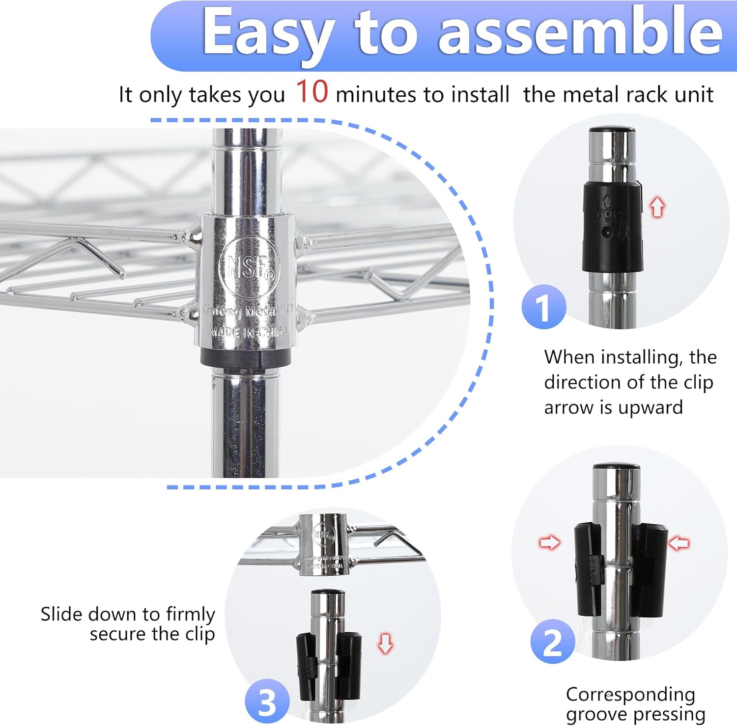 - Easy and Quick Assembly: With simple instructions and a user-friendly design, this wire shelving can be assembled quickly without the need for complicated tools. Spend less time setting up and more time organizing your space. Enjoy a hassle-free installation process with a sturdy and functional shelf in no time.