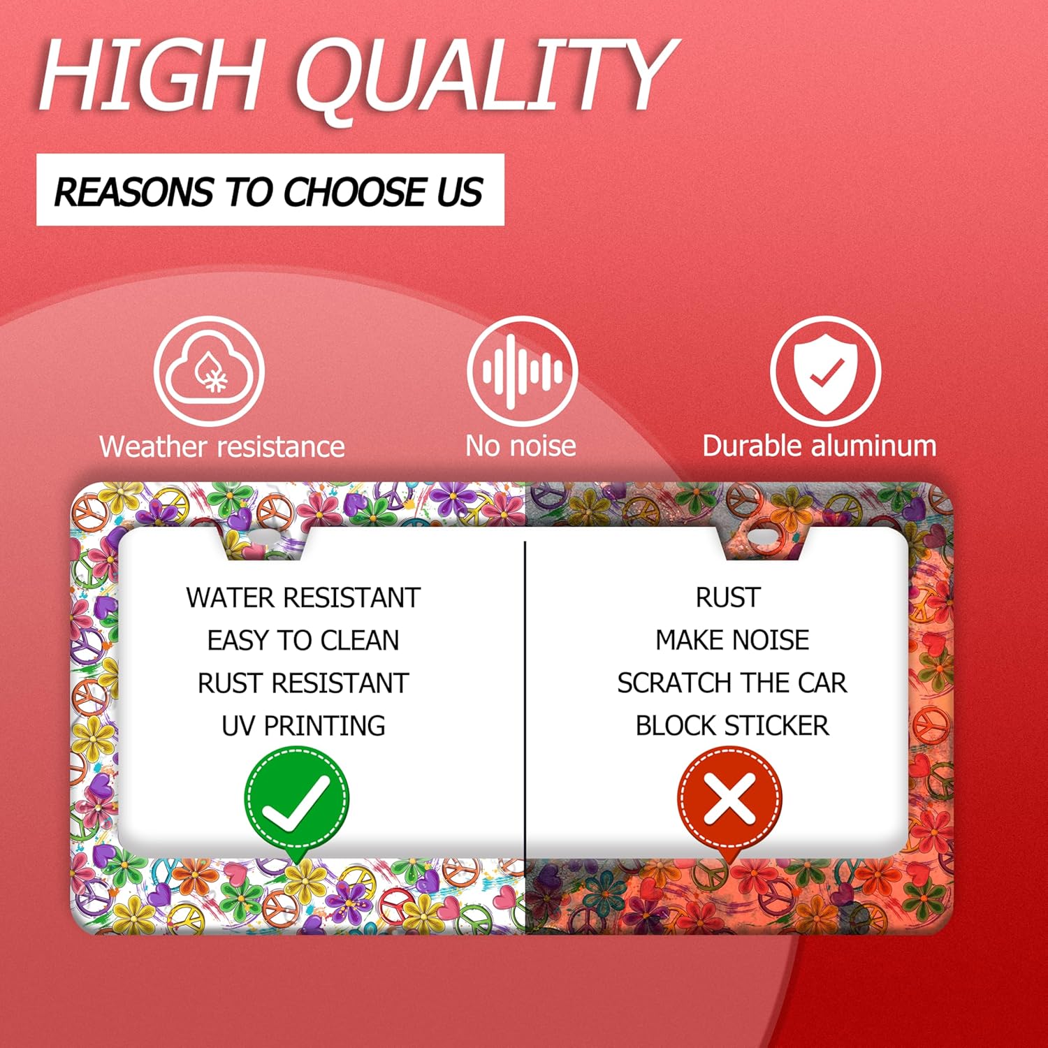 Peace Flower License Plate Frame Funny Colorful Floral License Plate Frames Stainless Steel Accessories Cars Decor With 2 Holes And Screws Fits Standard Us Ca Vehicles License Plate Holder 12.2 X 6 In