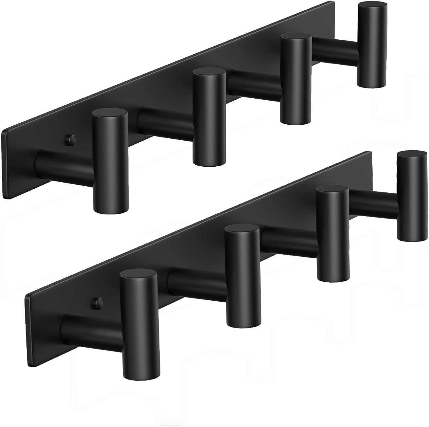 Coat Rack Wall Mounted with 4 Hooks, Wall Hooks for Hanging Towel Coat Hat Bag, Heavy Duty, Metal Hat Rack Coat Hanger Towel Hooks Coat Hooks for Entryway Bathroom Kitchen (Black, 2 Packs)