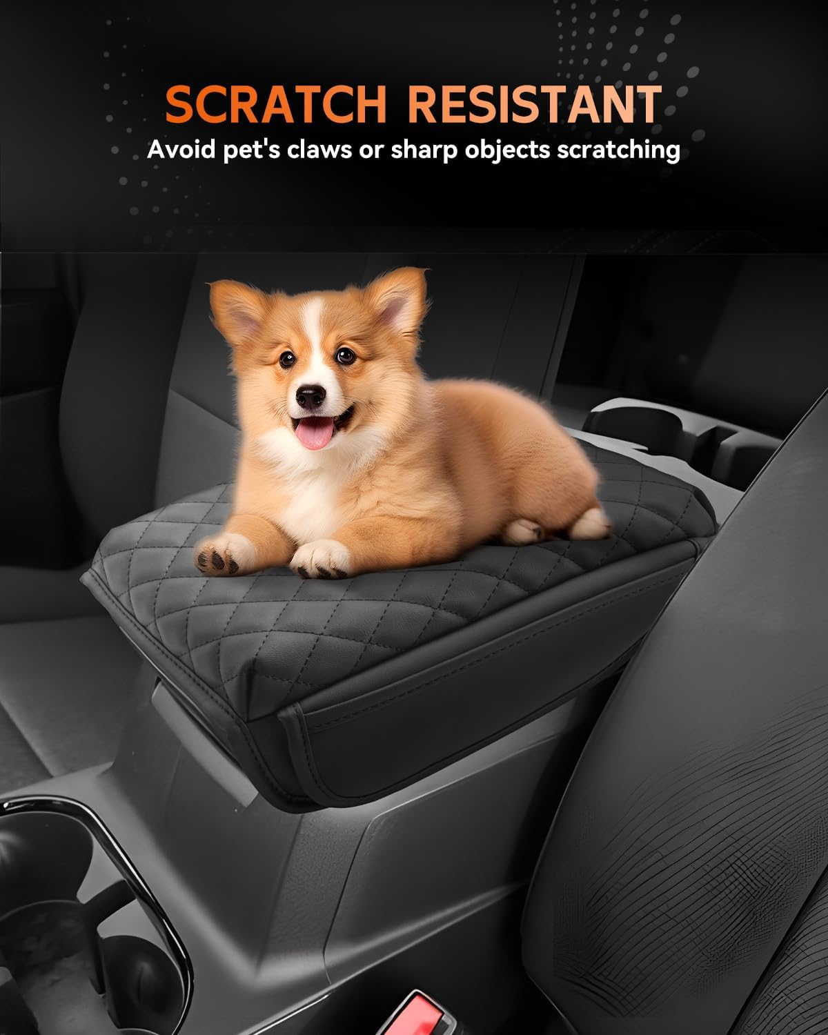 - [Easy To Install] Designed with a Velcro strap to secure it to the center console (no tools required). With super stretch and pull resistance, it will not change the open/close function of the armrest box.
