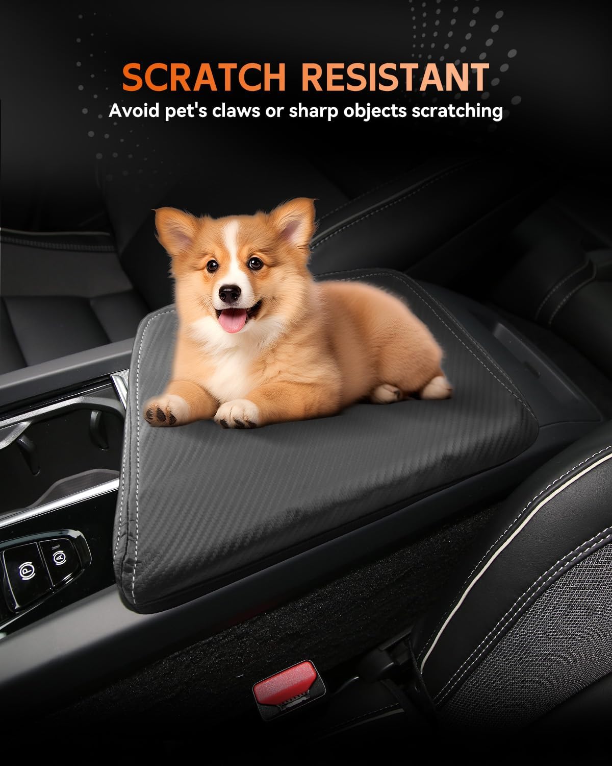 - [Easy To Install] Designed with a Velcro strap to secure it to the center console (no tools required). With super stretch and pull resistance, it will not change the open/close function of the armrest box.