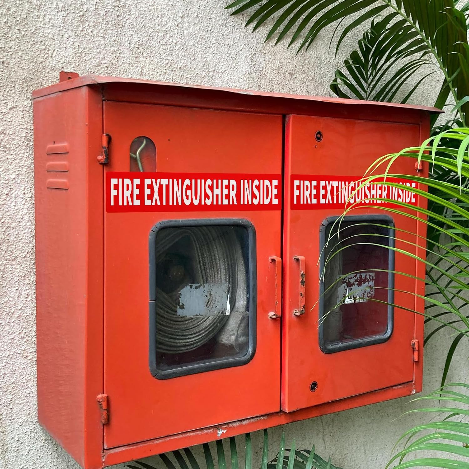 Madrigal Fire Extinguisher Inside Sticker Sign,8Pack 12x2.5" Self-Adhesive Vinyl, Weatherproof & UV Protected for Cars, Trailers, Rv's, Trucks and Vehicles, Red on White