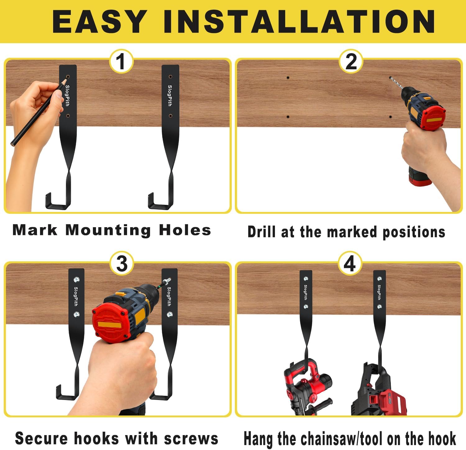 - Quick & Secure Installation:​Includes screws and pre-drilled holes for ​effortless setup, add a spacer (like 2x4 wood) to create hanging space, mounts on walls, rafters, or cabinets—chainsaw wall mounted stability in minutes
