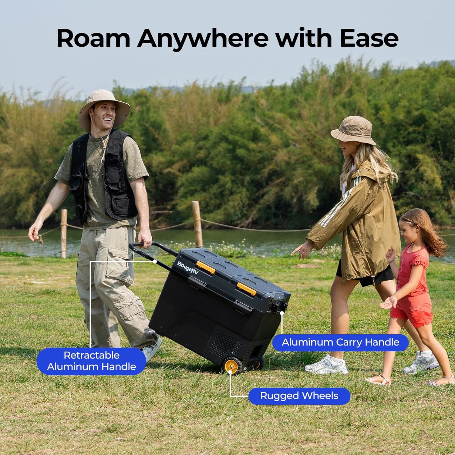 - Wheels & Handle for Easy Transport: This portable Dual Zone fridge comes with wheels and a telescopic handle, making it easy to transport from your car trunk to your campsite. Equipped with a solar charging port (60W max, 12V 5A), you can pair it with the BougeRV 173Wh battery and BougeRV 100W solar panel, extending its outdoor usage time