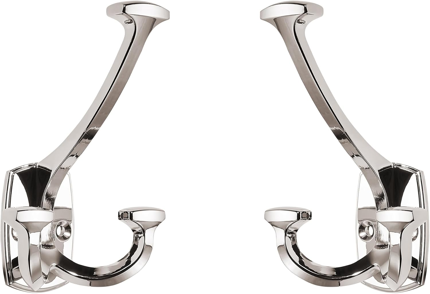 Large Wall Double-Sided Hook 2 Pack Polished Nickel Hook Decorative Heavy Duty Solid Large Coat Hooks for Towel Hanging Coats Robe Towel Bags Door Back 2 Prong Hooks