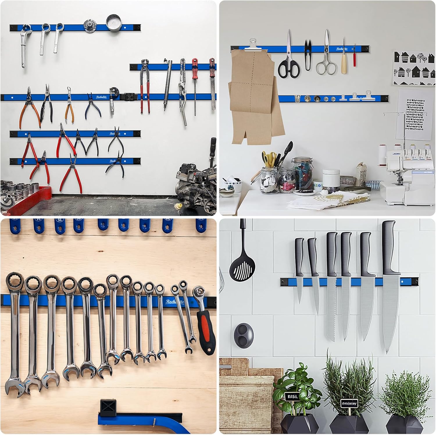 - MAGNETIC TOOL HOLDER SET: Rechabite magnet tool organizer set includes 6 pieces 18" magnetic tool bars, comes with 12 mounting brackets, screws and anchors. Each magnetic tool strip is extendable with each other connected.