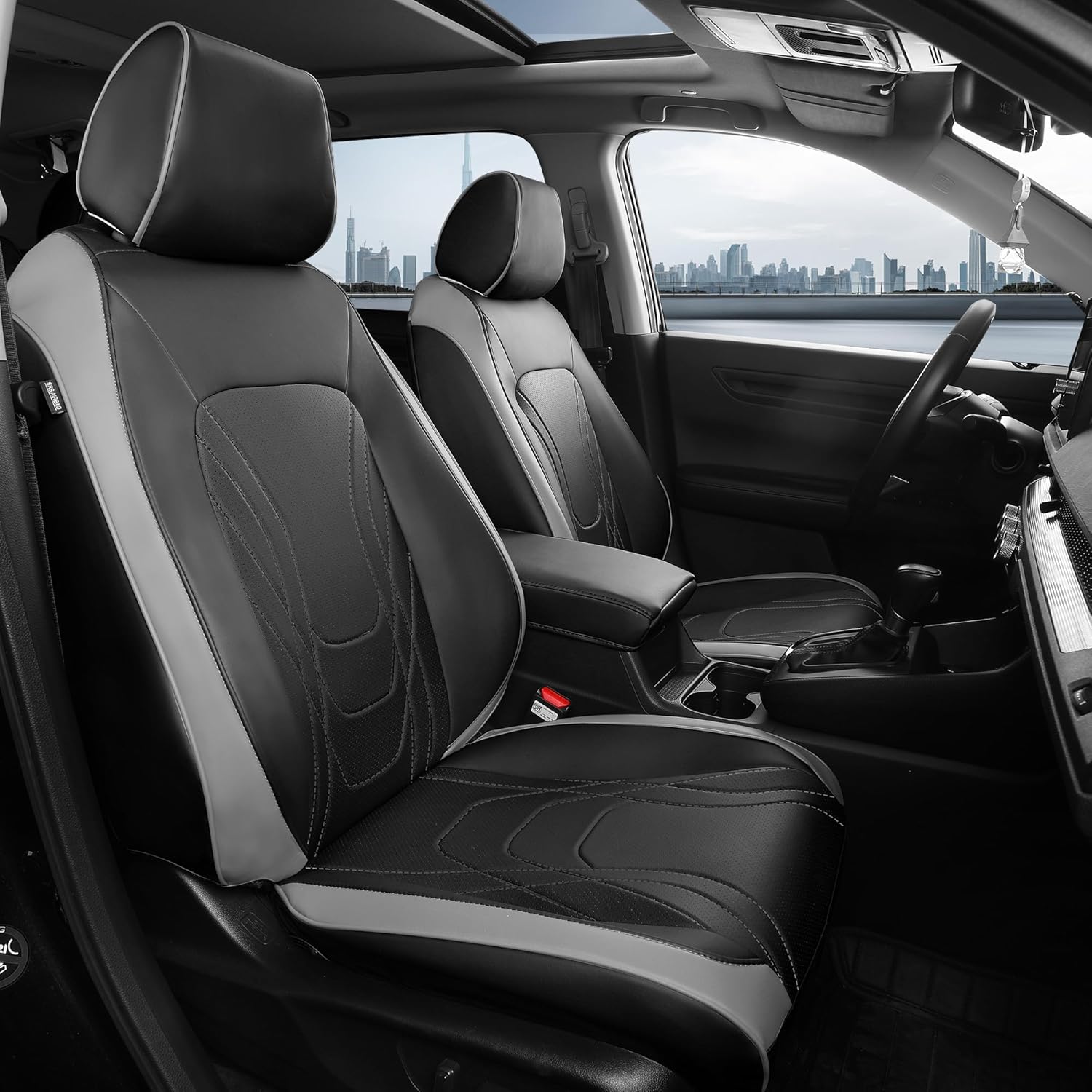 FREESOO Seat Covers for Honda CRV, Custom Fit Car Seat Covers for CRV LX EX EX-L Sport Touring Special Edition Trailsport Hybrid & Gas 2023 2024 2025 2026, Waterproof Leather Full Set, Black & Gray