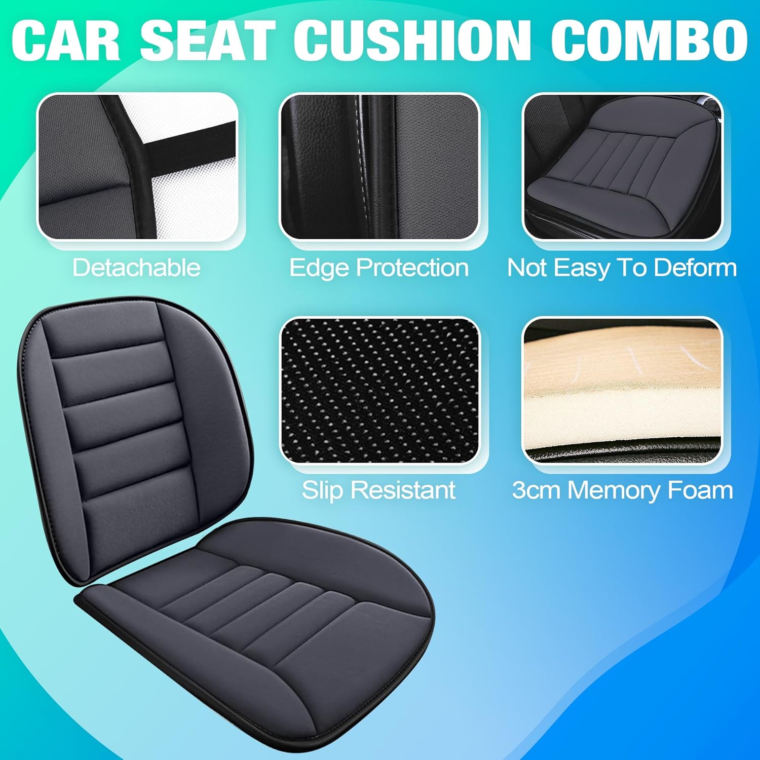 - 【Wide Application】Our car cushion seat and back support for chair set is great for most car seat, truck seat, bus seat, airplane seat, office chair, home chair, gaming chair, wheelchair, arm chair and more. Seat and back cushion helps the driver to adjust the height and get a better view
