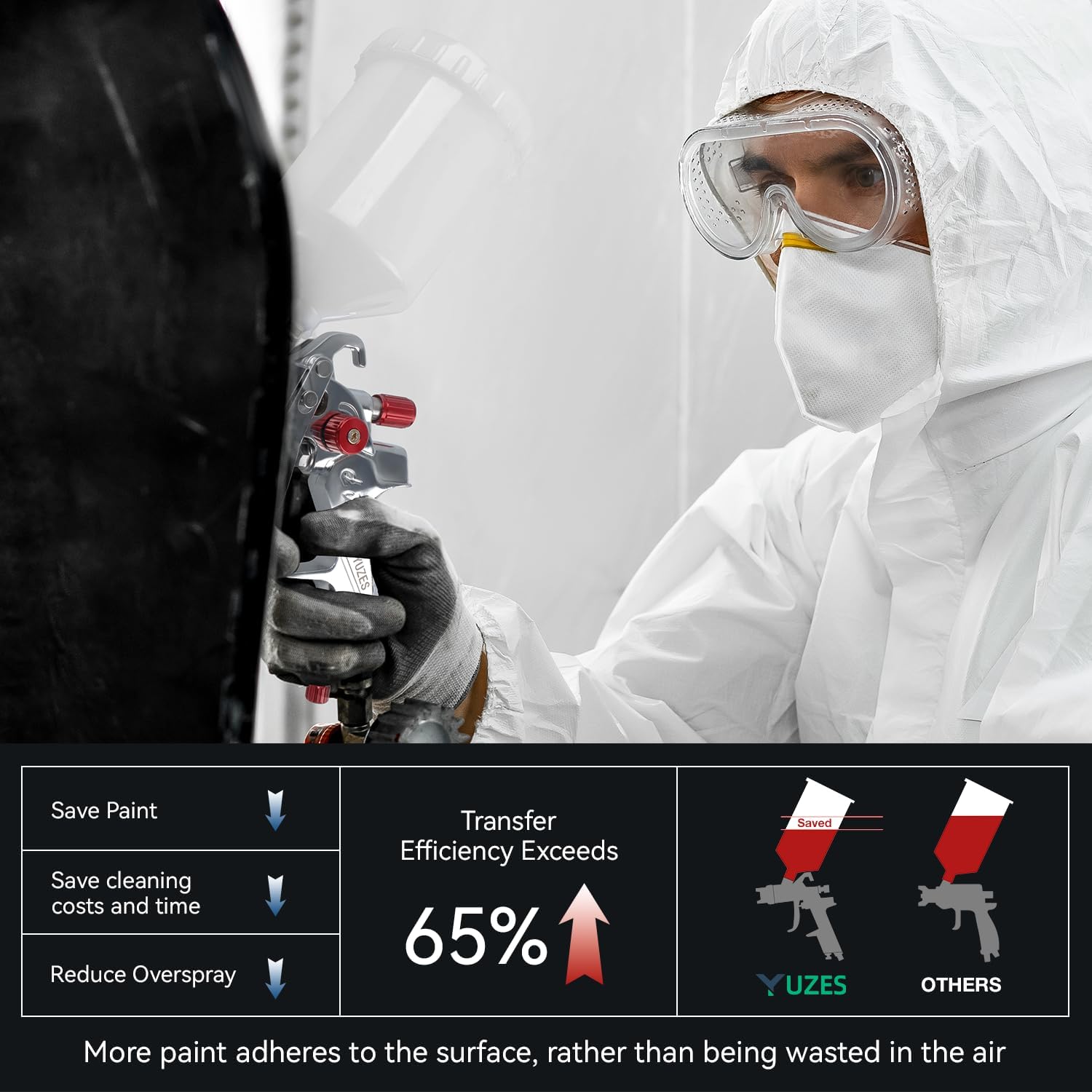 - High Transfer Efficiency & Paint Saving: This HVLP spray gun uses over 65% of the paint, cutting waste and overspray. It delivers smooth, professional coverage on cars, furniture and DIY projects, helping you save paint and money.