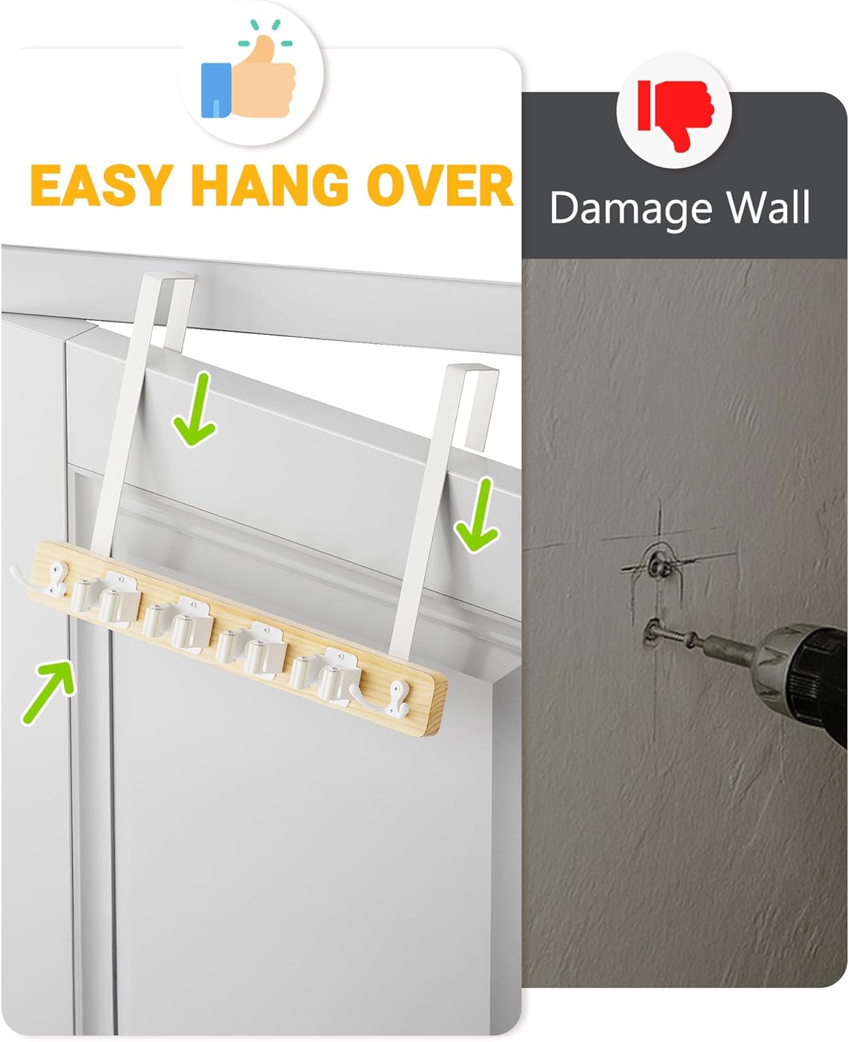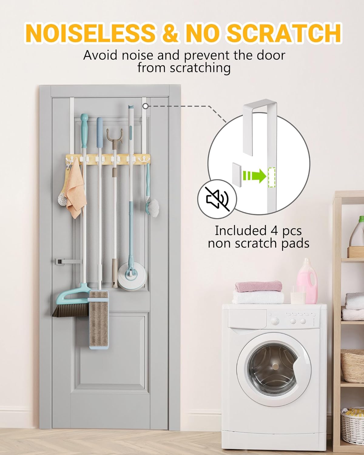- Wide Range of Uses, Ideal Gift: Step away from traditional broom holder door mount. Simply place door broom holder organizer over the door. Our over the door broom and mop holder maximizes space without compromising style, effortlessly organizing brooms, mops, towels, and brushes in the laundry room, garage, bathroom or kitchen. With its aesthetic appeal and practicality, it's a thoughtful gift for occasions like Father's Day, Mother's Day, or for husband, wife and grandparents