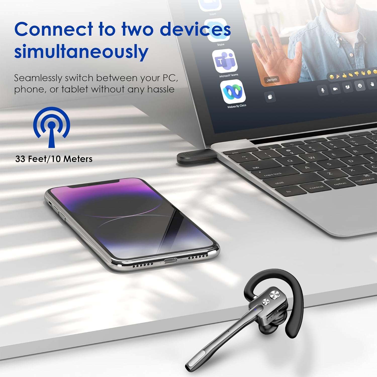 - Wide Compatibility & Charging Case Stand: M-ONE Bluetooth headset provide the convenience of connecting two devices simultaneously, allowing users to easily switch between their phone and laptop without the need for repeated pairing. After you finish your work, you can easily place the headset on top of the headset case, which increases the convenience of charging the Bluetooth headset