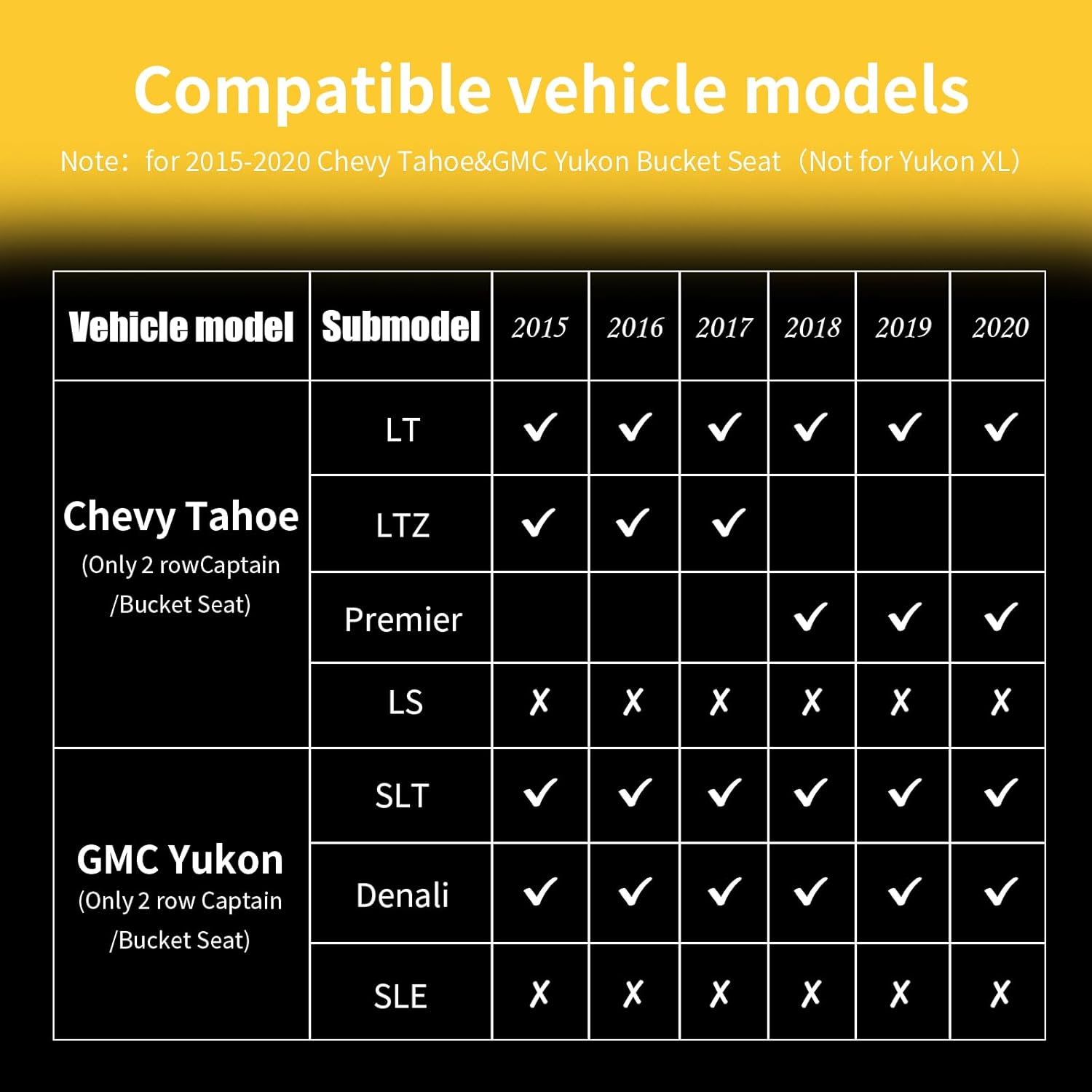 - ăCustom Fită: For Tahoe & Yukon 2015-2020 with 2nd Row Bucket Seats