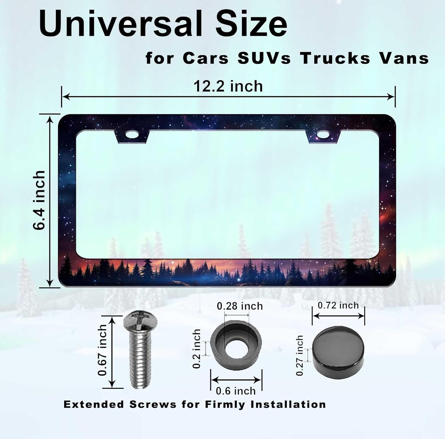 Universal License Plate Frame - Heavy Duty Rustproof Aluminum Matte Black Car Tag Holder Bracket Fits All US States, Easy Install with Screws Included (Starry SkStarry Sky Galaxy-2pcy Galaxy-2pc)