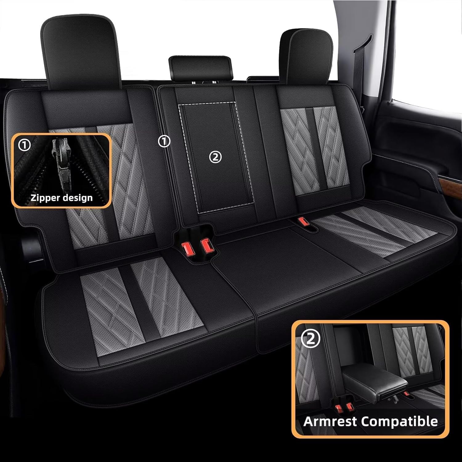 AOMSAZTO Ford Ranger Seat Covers: Full Set Custom Fit 2019 2020 2021 2022 2023 2024 2025 Ford Ranger Breathable Waterproof Leather Seat Protector(5 Seats, Black&Grey)
