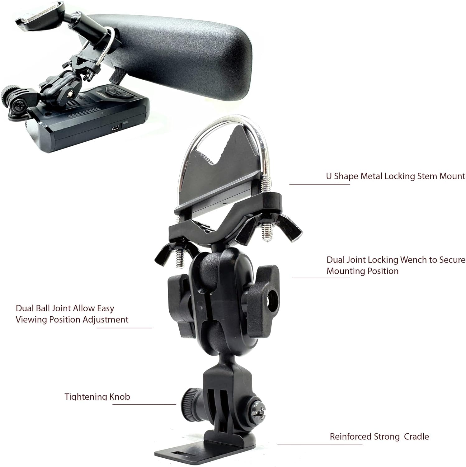 - Radar detector rearview mirror rod bracket is made of all industrial glass fiber composite material to with stand heavy usage of radar detector