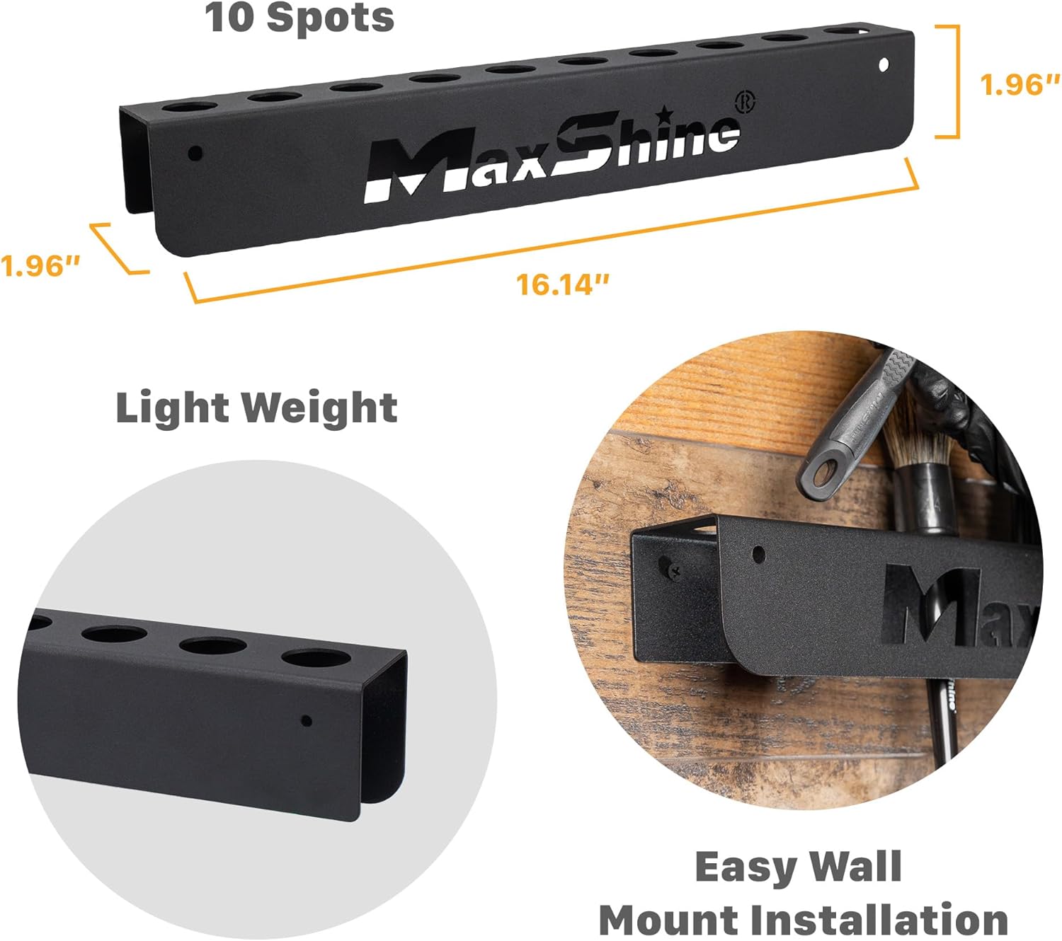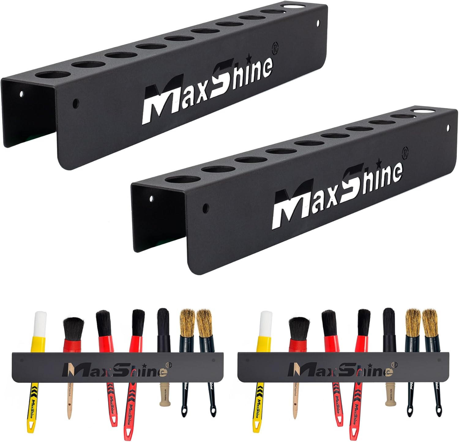 Maxshine Universal Detailing Brush Holder - 10 Car Detailing Brushes Organizer, Sturdy, Simple & Lightweight Design, Easy Wall Mounting for Access, Premium Auto Detailing Accessories & Supplies
