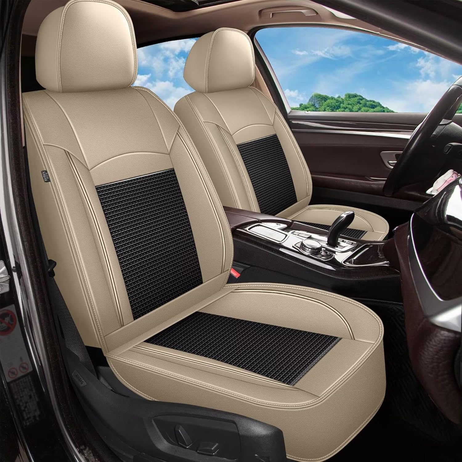 2 Front Seat Covers Fit for Toyota Camry 2012-2023 2024 2025: Car Seat Covers Leather Waterproof Ice Silk Breathable Car Seat Cushion Protector (2 Seats, Black & Beige)