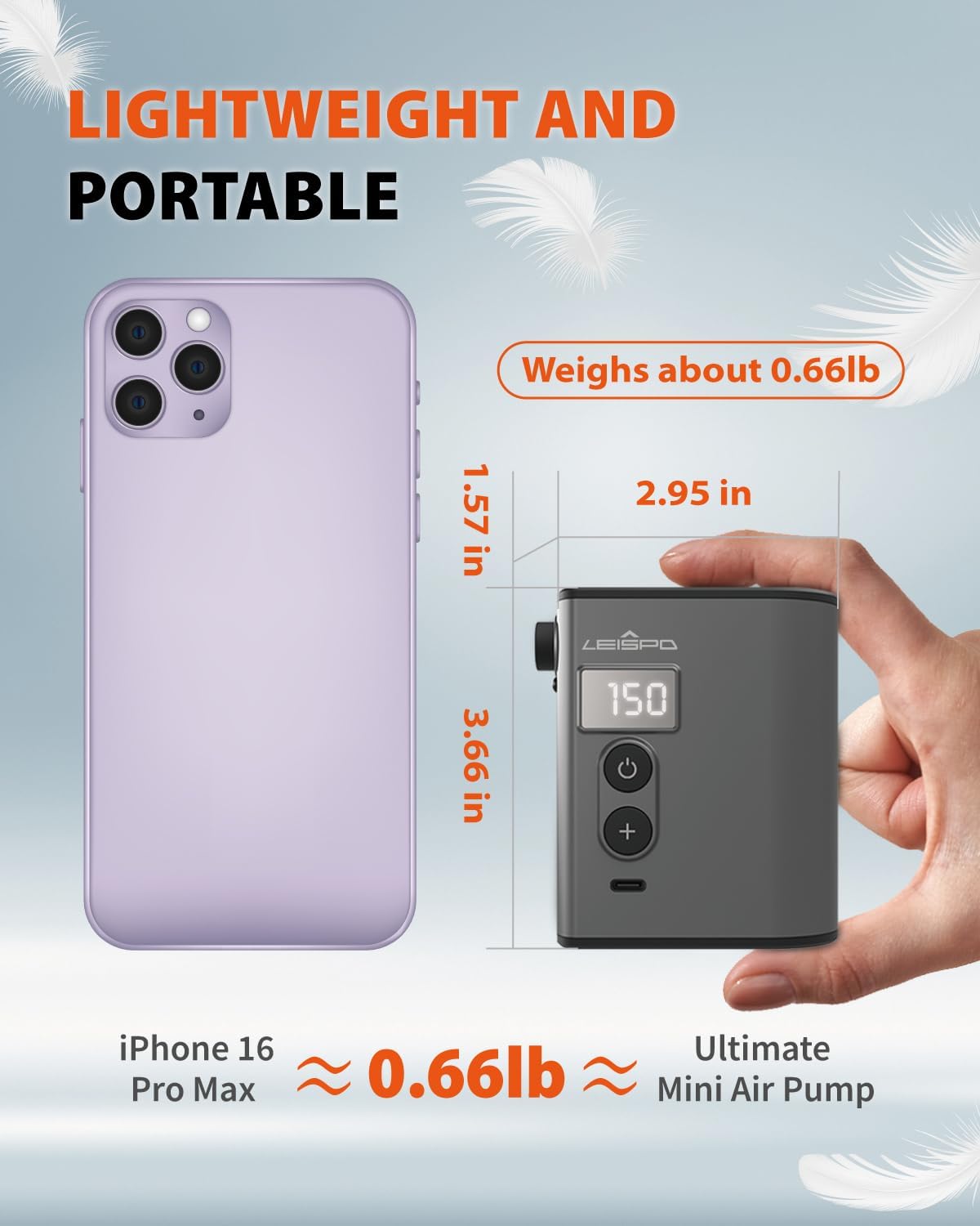 - Compact & Lightweight for Easy Portability β Designed to be palm-sized and ultra-lightweight, this portable air pump is easy to carry in backpacks or bike saddlebags. The built-in 1500mAh rechargeable battery provides reliable performance for long rides and emergencies.
