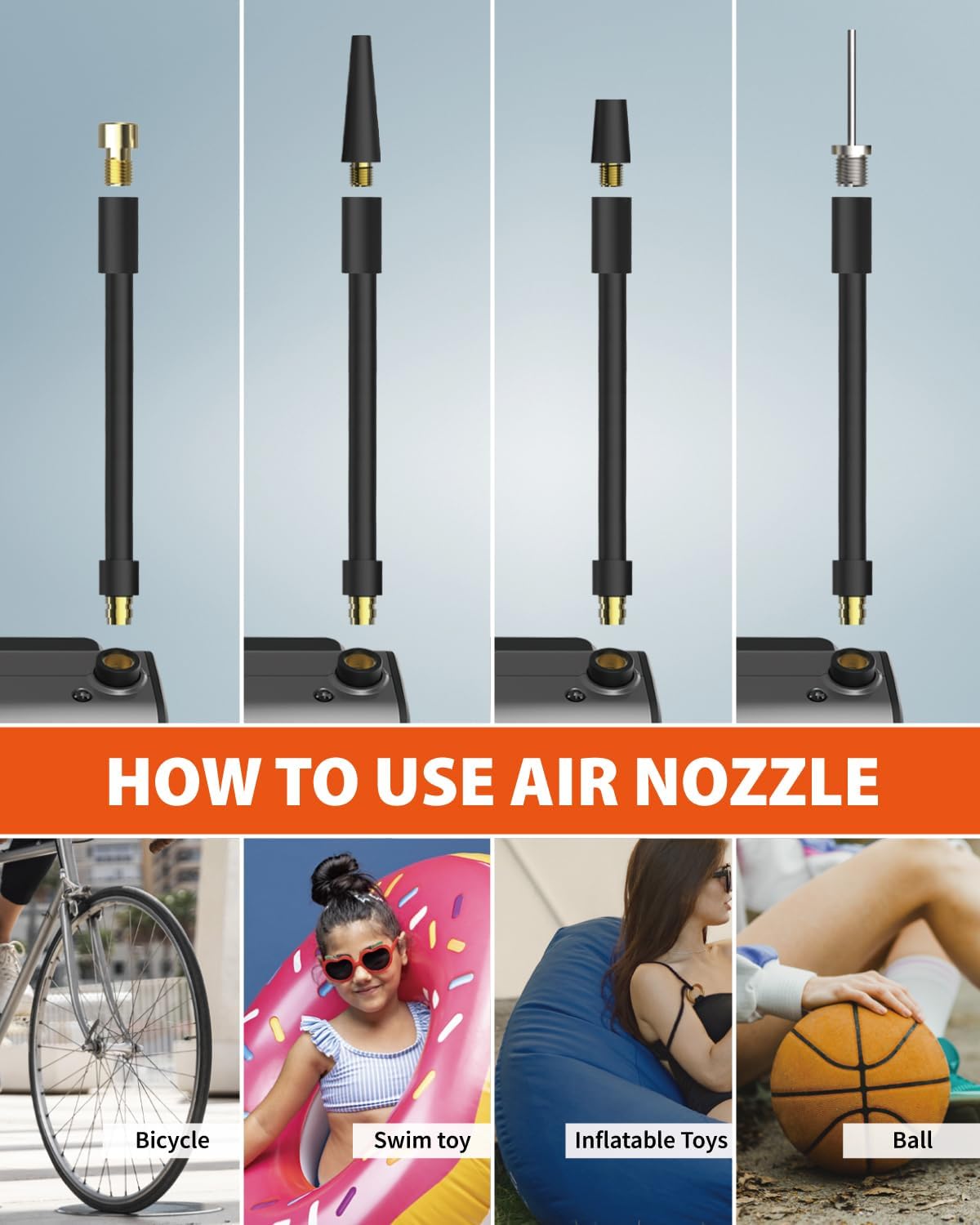 - Versatile & Easy to Use β Suitable for road bikes, mountain bikes, e-bikes, motorcycles, and sports balls, making it a must-have tool for cyclists and outdoor enthusiasts. The one-button start design simplifies operation, and the Type-C charging port ensures fast and convenient recharging.