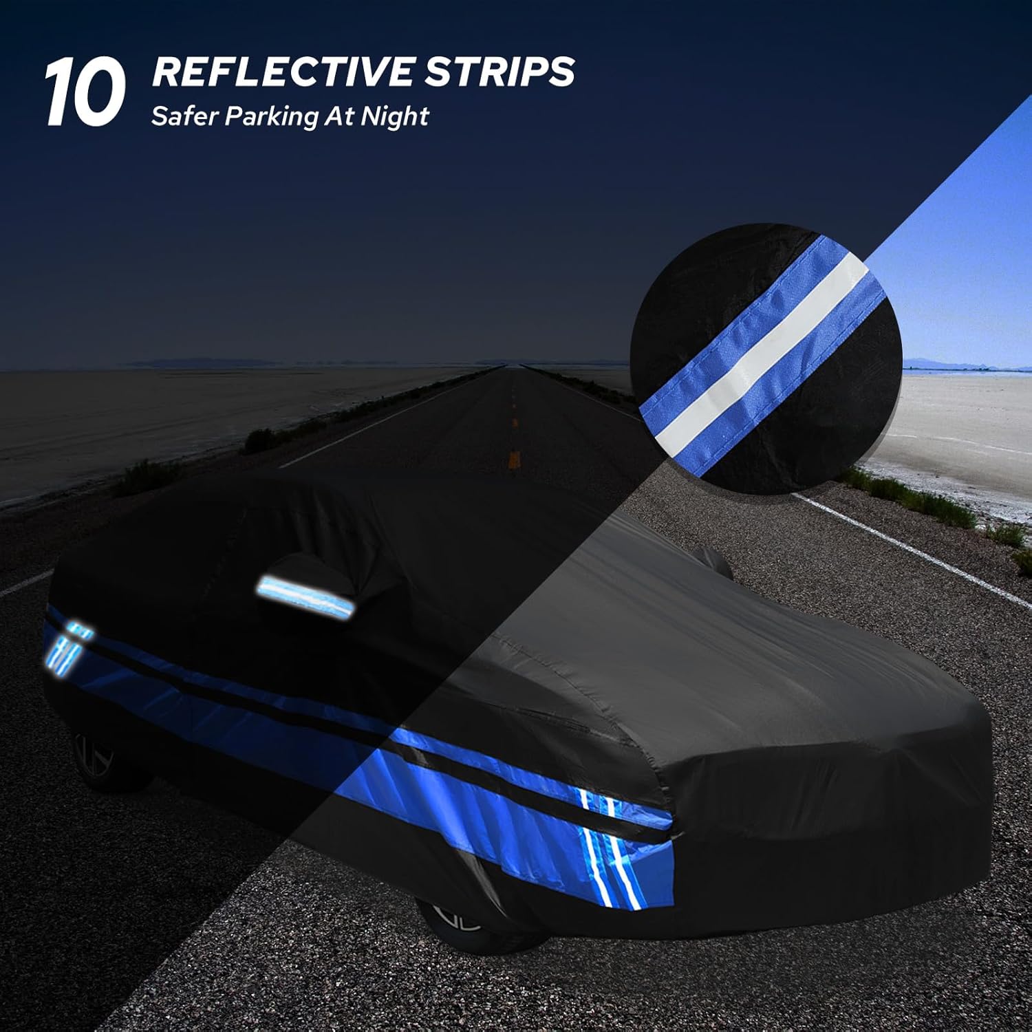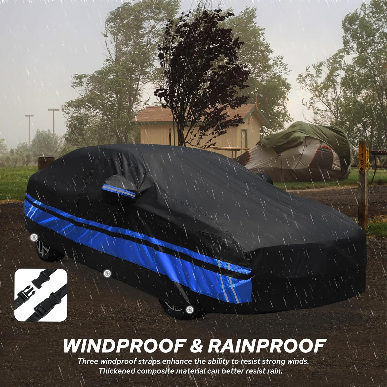 - ăMulti-functional Designă1. The Toyota Corolla car cover has three snap-on reinforced windproof belts in the front, middle, and back to resist strong winds. 2. There is a door zipper on the driver's side for easy access to items. 3. The unique reflective strip design reminds others at night to ensure parking safety. 4. There are vents on the side of the car cover to prevent internal moisture accumulation and keep it dry, allowing for faster ventilation in summer. 5. There is a front logo on the front side of the Toyota Corolla car cover, which can quickly identify the front and rear during installation.