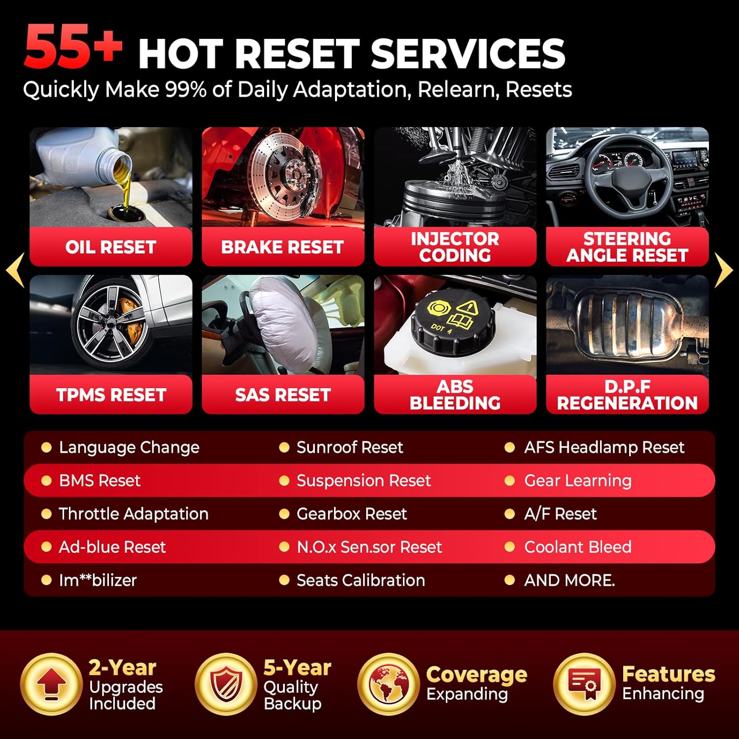 - 【55+ Maintenance Services】: Complete your repair or maintenance life with LAUNCH X431 PRO3 V+ 5.0 scanner, which provides your with Oil Reset/Bra.ke Reset/Injector Coding/D-P-F Regen/SAS Reset/TPMS Reset/ABS Bleeding/Throttle Adaptation/Gear Learning/Seats Calibration/Sunroof Reset and more. Explore over 100+ enhanced services from "Diagnose>Brand>System>Special Function".