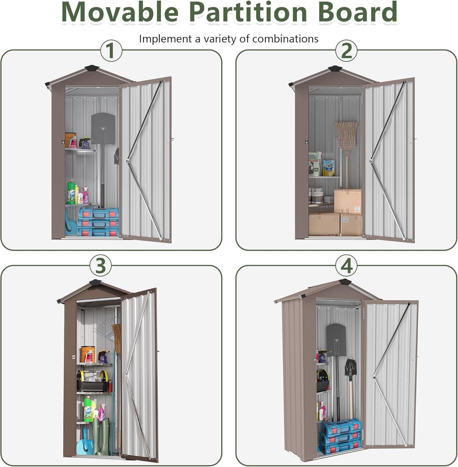 Outdoor Metal Storage Shed, Waterproof Garden Tool Shed with Lock, Galvanized Steel Utility Cabinet, Weather-Resistant Storage Locker for Backyard, Patio, Garage Tools Organization (Brown)