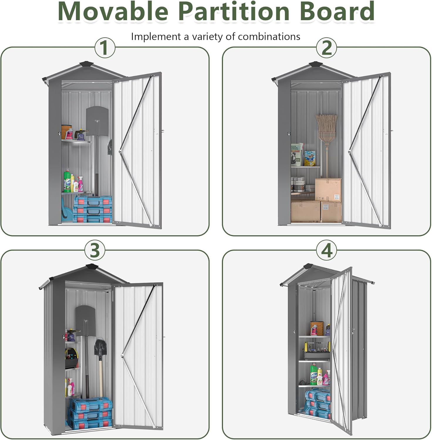 - Premium Material: Made from galvanized steel, this outdoor storage shed is built to withstand varied weather conditions, including rain, snow, and sun exposure. The protective coating helps extend its usability for backyard, patio, and garage storage.