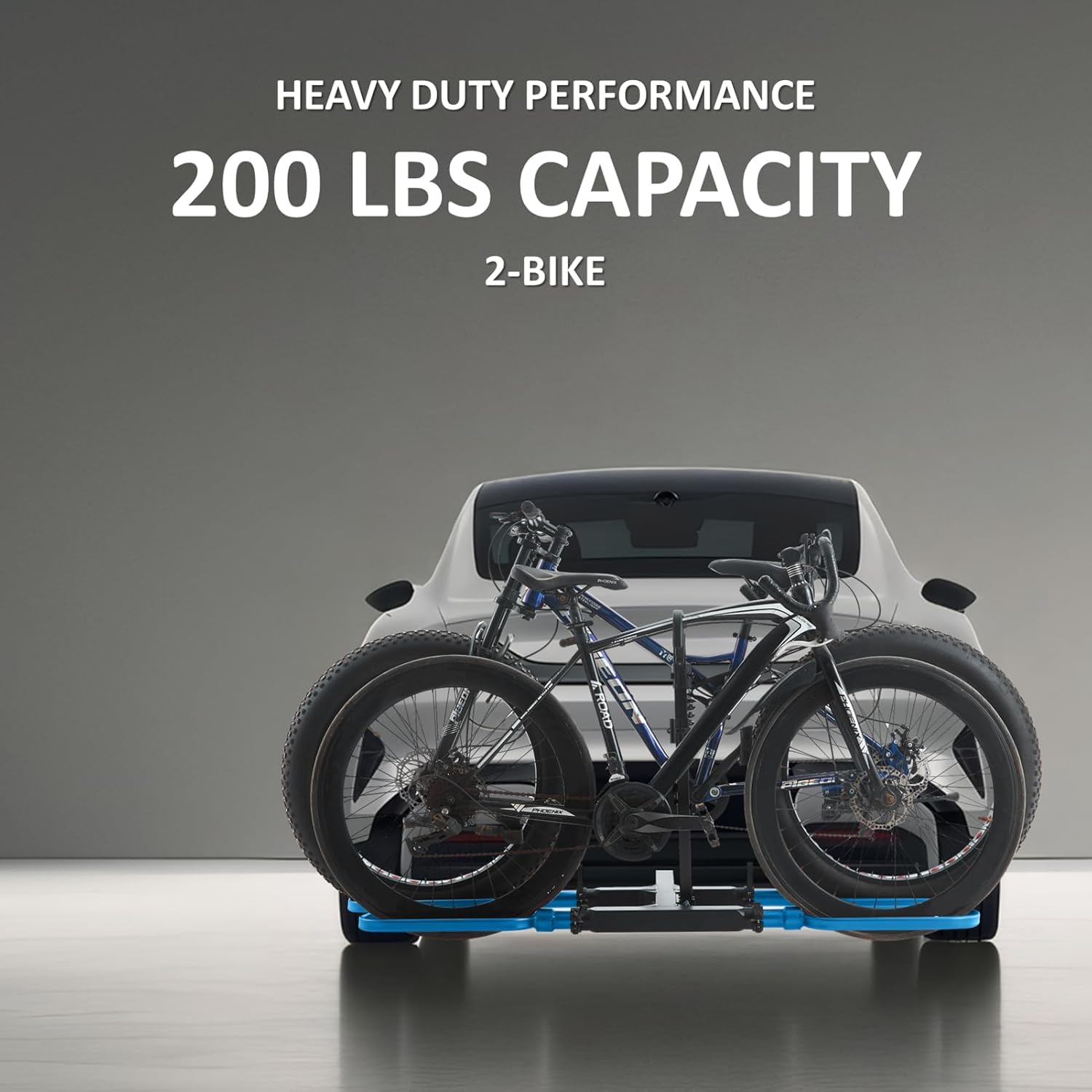 Trailer Hitch Bike Rack for Car 2 Bikes, E Bike Carrier Hitch Mount 2 Bike, Fat-Tire Ebike Rack for Tow Hitch, Fits 2" Receiver for SUV Truck Rv Van (2 Bike - 200 Lbs Cap - Blue)