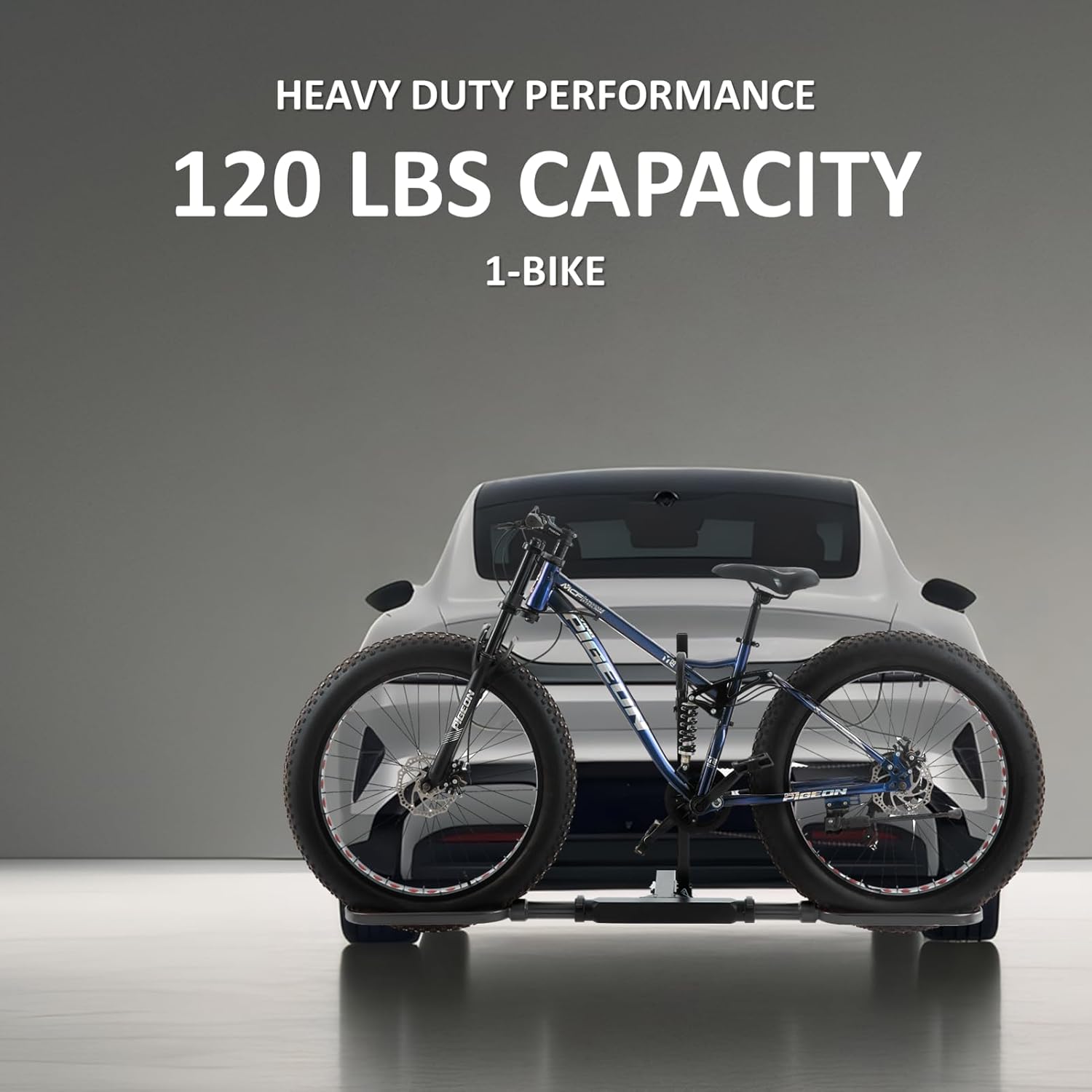 - Fits 1 Heavy-Duty Bike: Elevate your outdoor trips with our robust aluminum hitch bike rack. It supports 40-50β wheelbase, tires up to 5.5β, and total weight of 120 pounds. This makes it an excellent fat tire bike rack, and secure ebike rack. It also carries mountain, road, fat-tire ebike, electric bicycles etc.